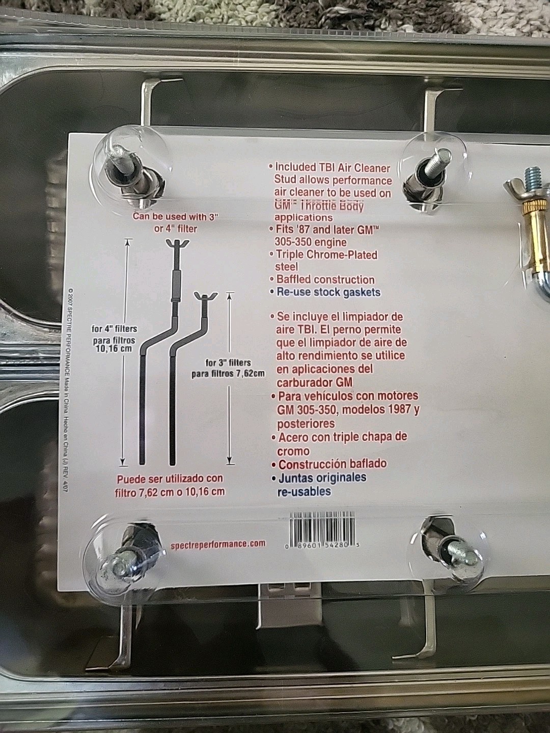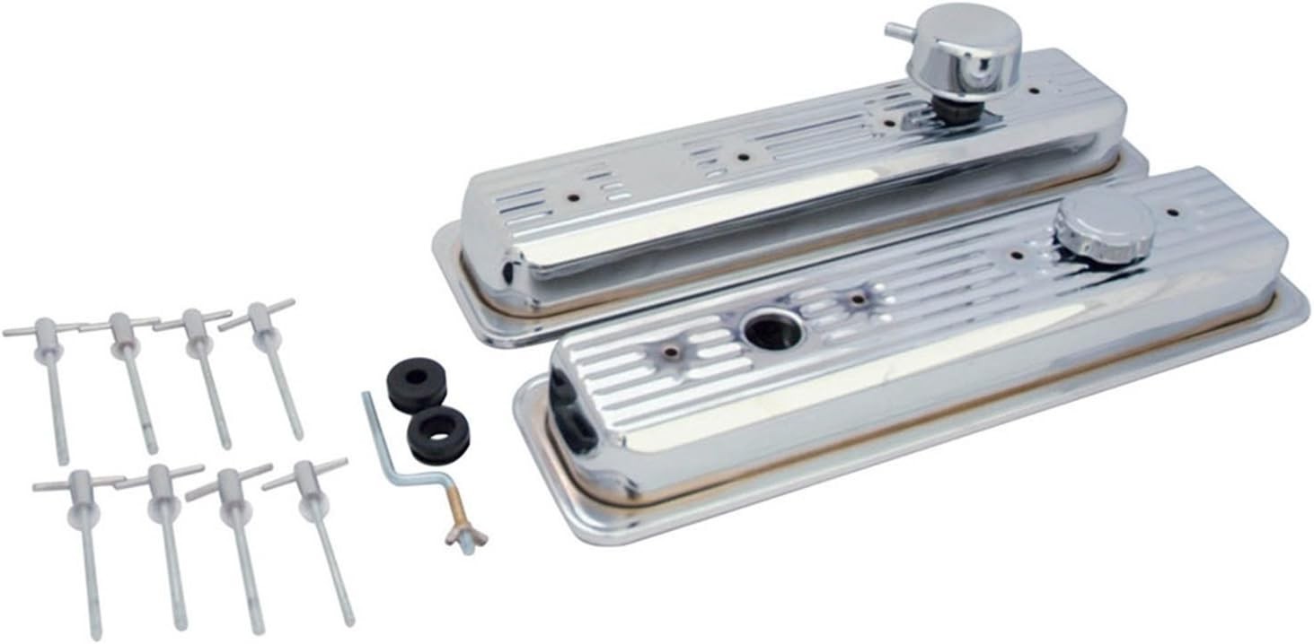 This Spectre engine dress-up kit was designed for the 1987 - 1995 Chevy 305 350 engines. This kit includes: stock height valve covers, chrome valve cover T-bolts, chrome oil filler cap, chrome PCV breather, grommets, and an air cleaner adapter stud. The air filter adapter stud, is a z-bolt that is designed to allow you to use a center stud style air cleaner assembly instead of the stock dual-stud setup. Manufactured using high quality materials this kit features triple chrome plated parts.