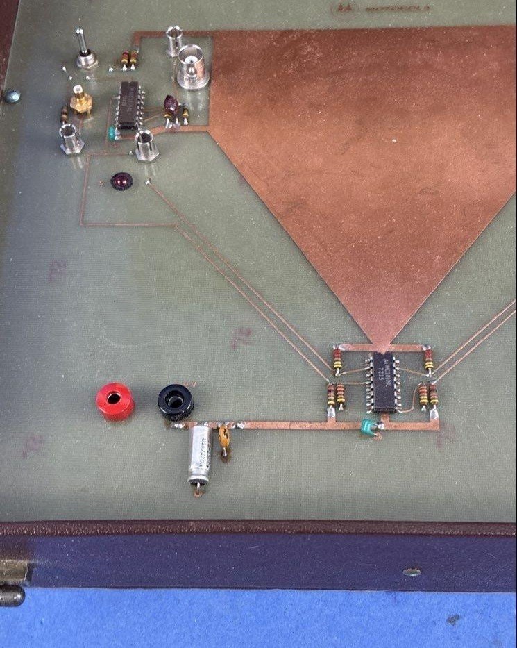 Internal demonstration circuit board featuring the MC10194 chip, resistors, capacitors, and connectors