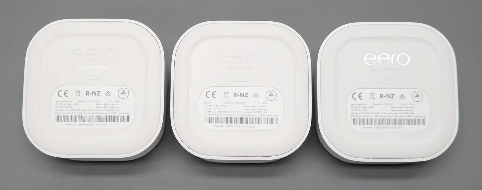 Description: Includes Retail Packaging, Wired eero 6, 2x Wireless eero 6 extenders, 3x power adapters, Ethernet cable. Scratched bodies.