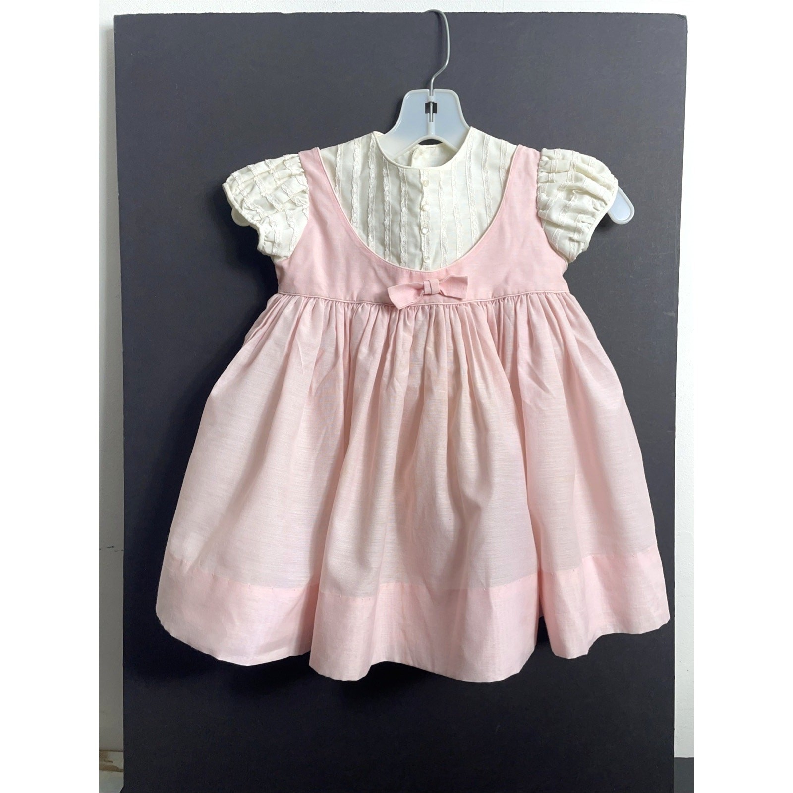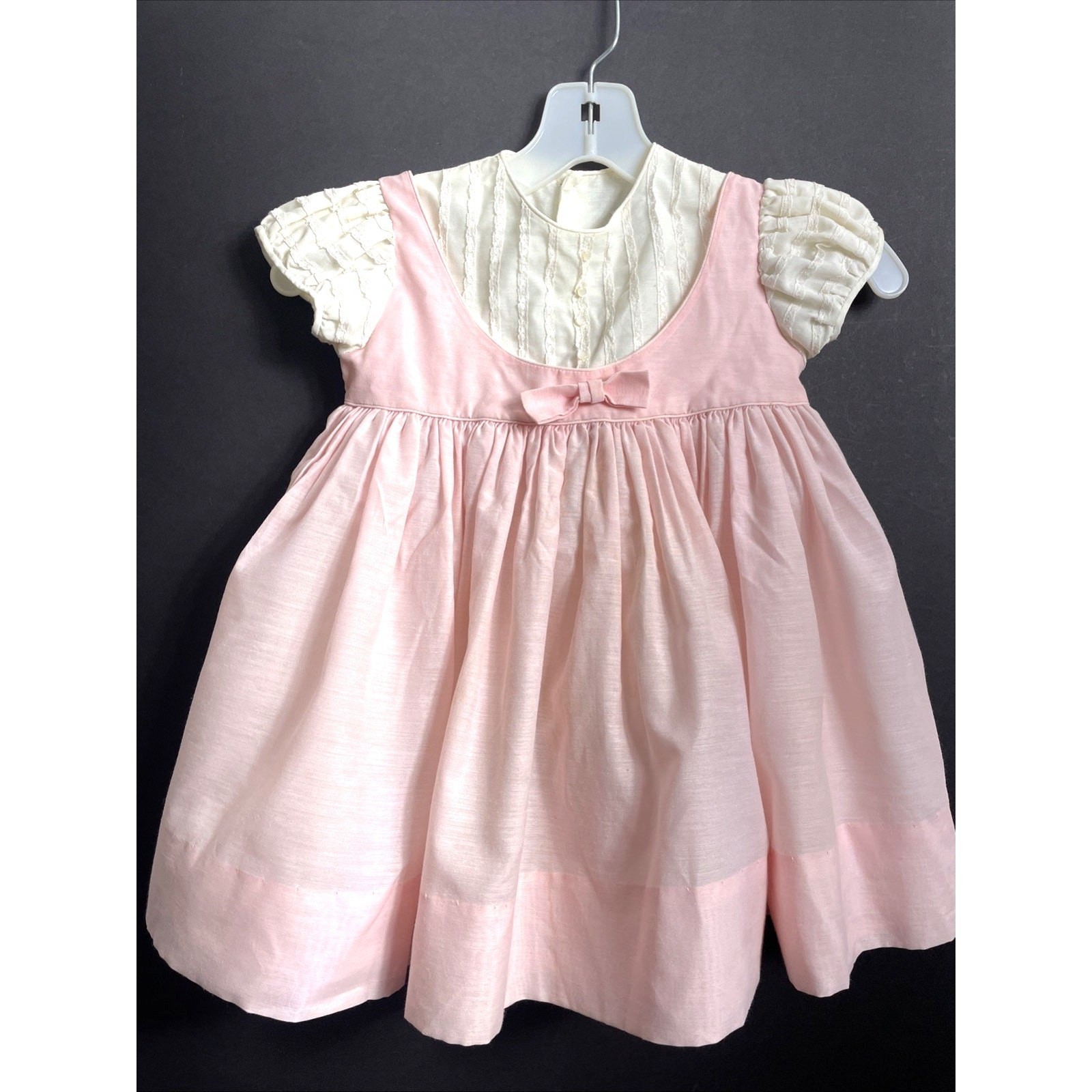 Adorable vintage 1970s girls? pink tulle dress by Cinderella brand, sized for 18?24 months. Features a soft pink overlay of tulle, delicate pearl-like buttons, and classic princess-style detailing perfect for portraits, special occasions, or collectors of vintage children?s fashion.