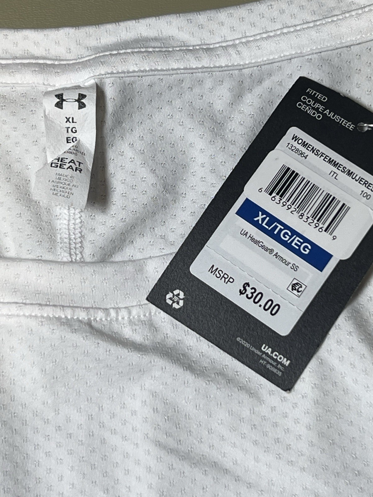Under Armour Heat Gear Amour Fitted Women’s Size XL White Short Sleeve