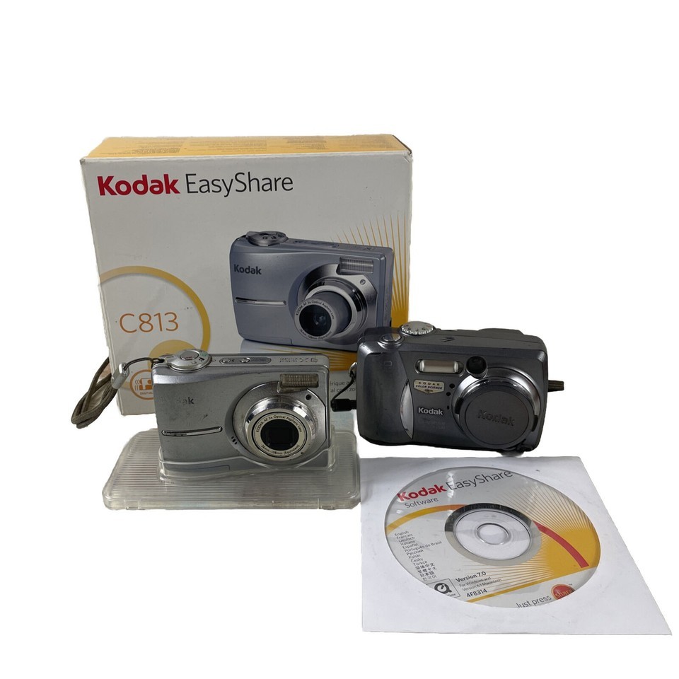 Vintage Kodak Easyshare Lot DX4530 Works & C813 (Non-Working) w Stand & Software