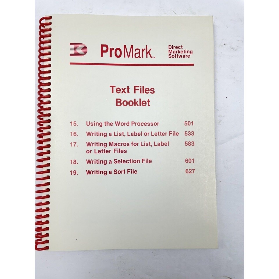 2634. Vintage ProMark Direct Marketing Software by Krieger ? Floppy Disks Books. The outside cover original packaging is worn. The inside packaging is pretty good. Please look at the pictures. Always consider offers.