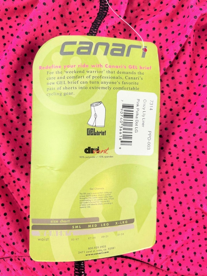 Canari Women's Crazy Lily Liner Shorts, Cycling Shorts, Gel Liner, Size Large, Color Pink Polka Dots