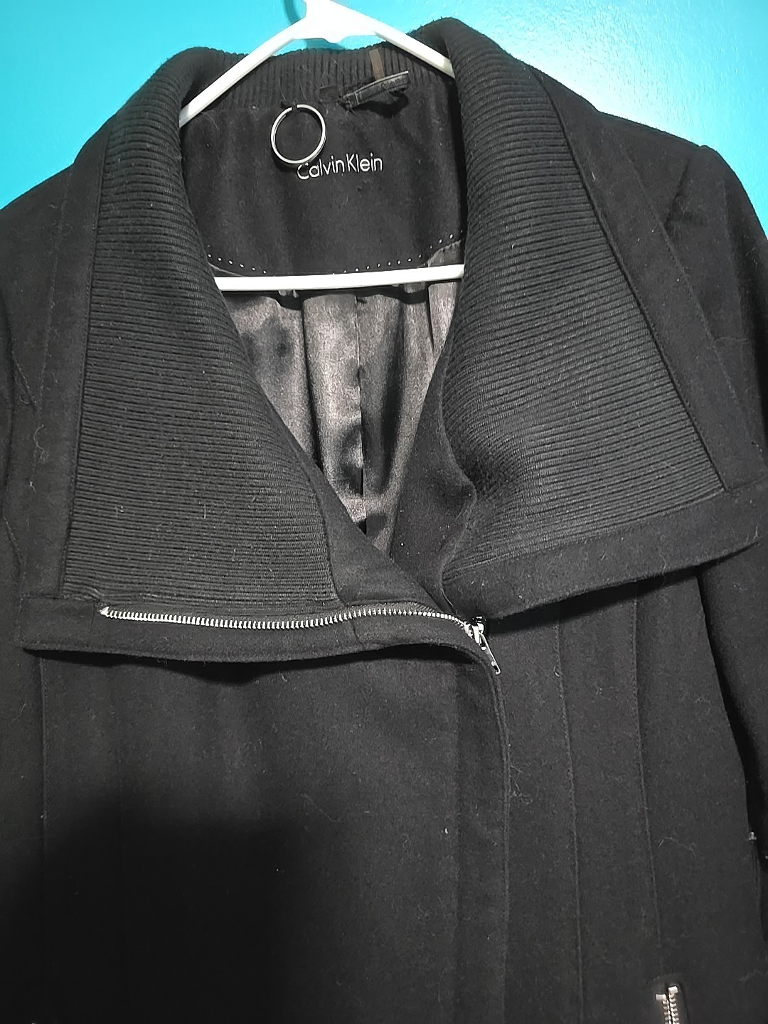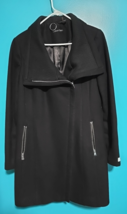 Calvin Klein Women's Large Black Asymmetric Zip Wool Blend Coat