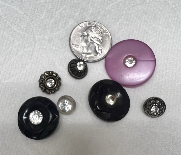 7 Vintage Hard Plastic & Rhinestone Buttons 1/2-1 Inch Mixed Lot