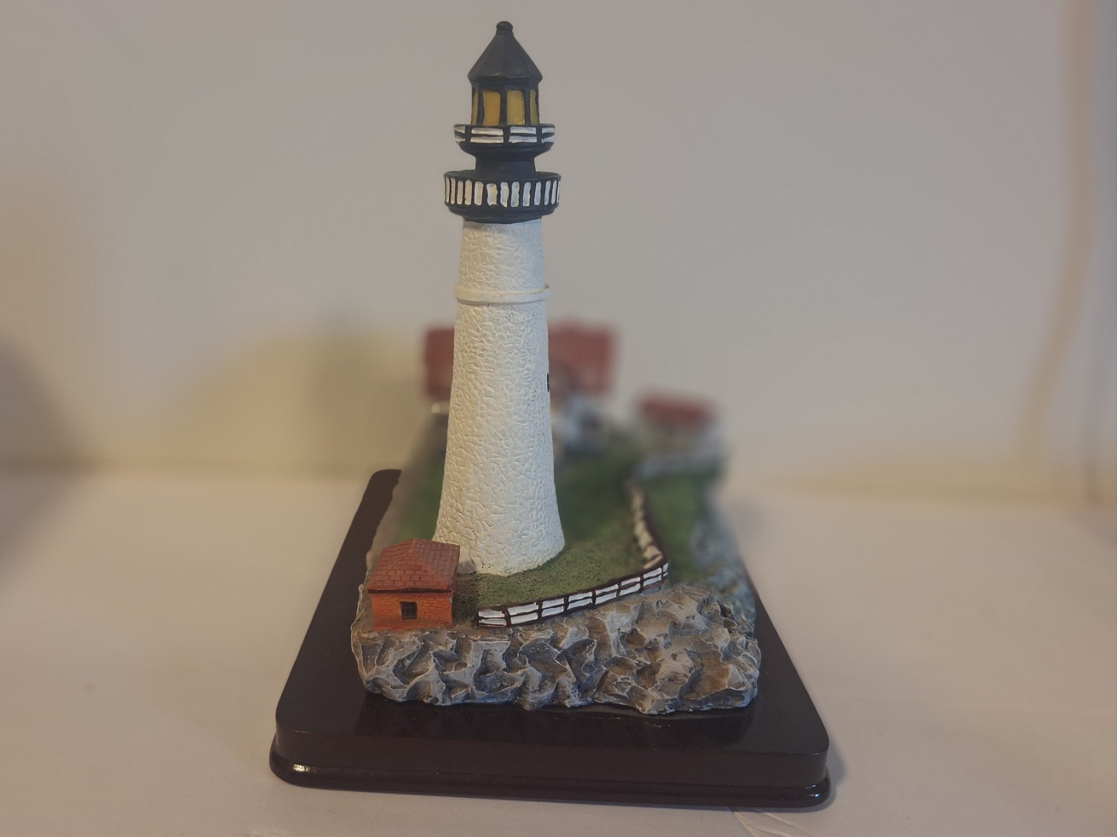 The product is a 1998 collectible lighthouse from the Oneida Studios Lighthouse Point Collection. Portland Head, ME. This decorative sculpture features intricate details and is a perfect addition to any lighthouse enthusiast's collection. The Oneida brand is known for its quality and craftsmanship, making this piece a valuable find for collectors.