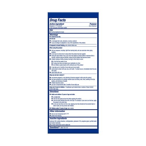 Active Ingredients: Adapalene (0.1%)(Retinoid). Purpose: A.. |