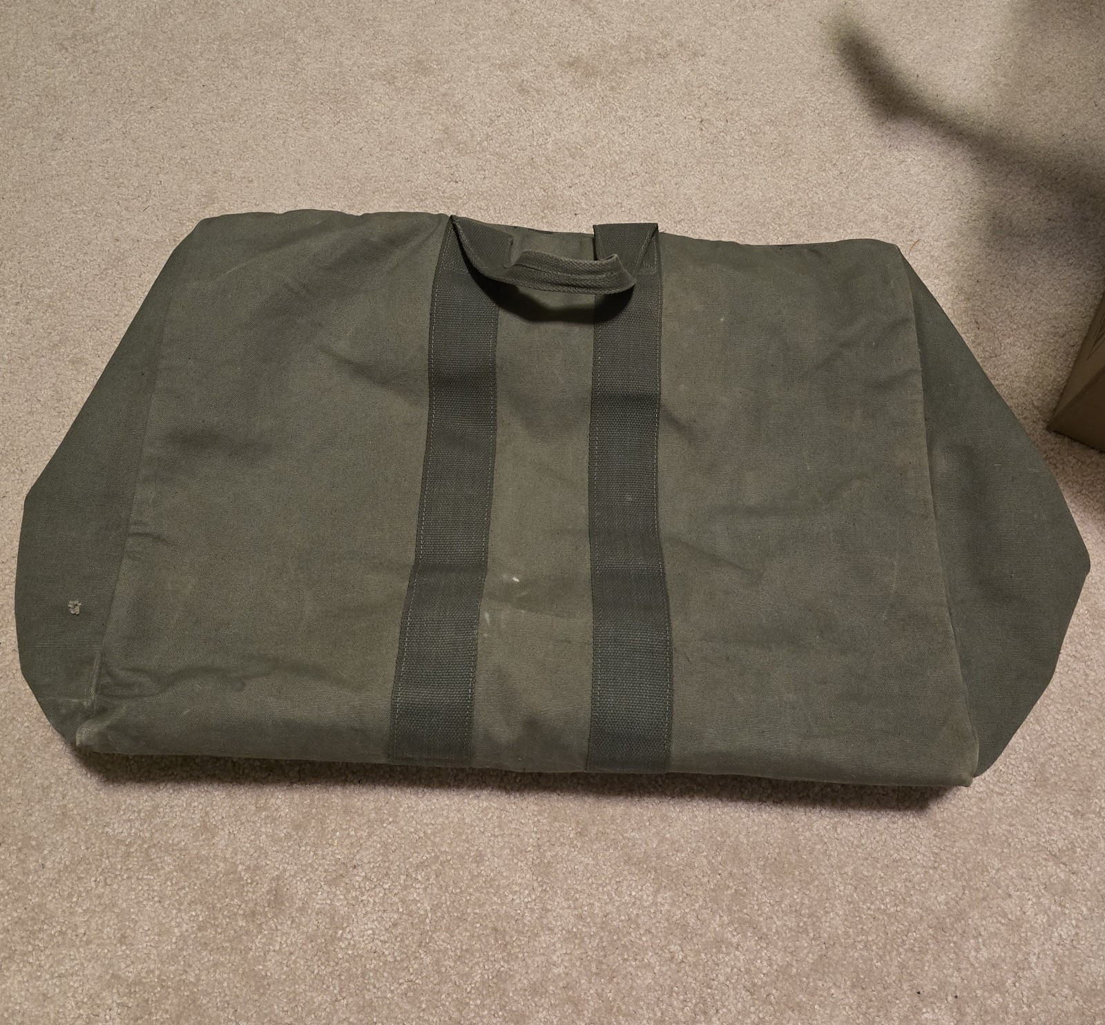 Used by all branches of the US Military as a general purpose, heavy duty kit bag. Used most often by USAF aircrew for their kit as well as all branches of the service's airborne troops who often refer to it as the "Aviator's Kit Bag" or the "Parachutist Kit Bag." After a jump it was used to carry and store the fully deployed parachute and reserve back to the repacking facility.