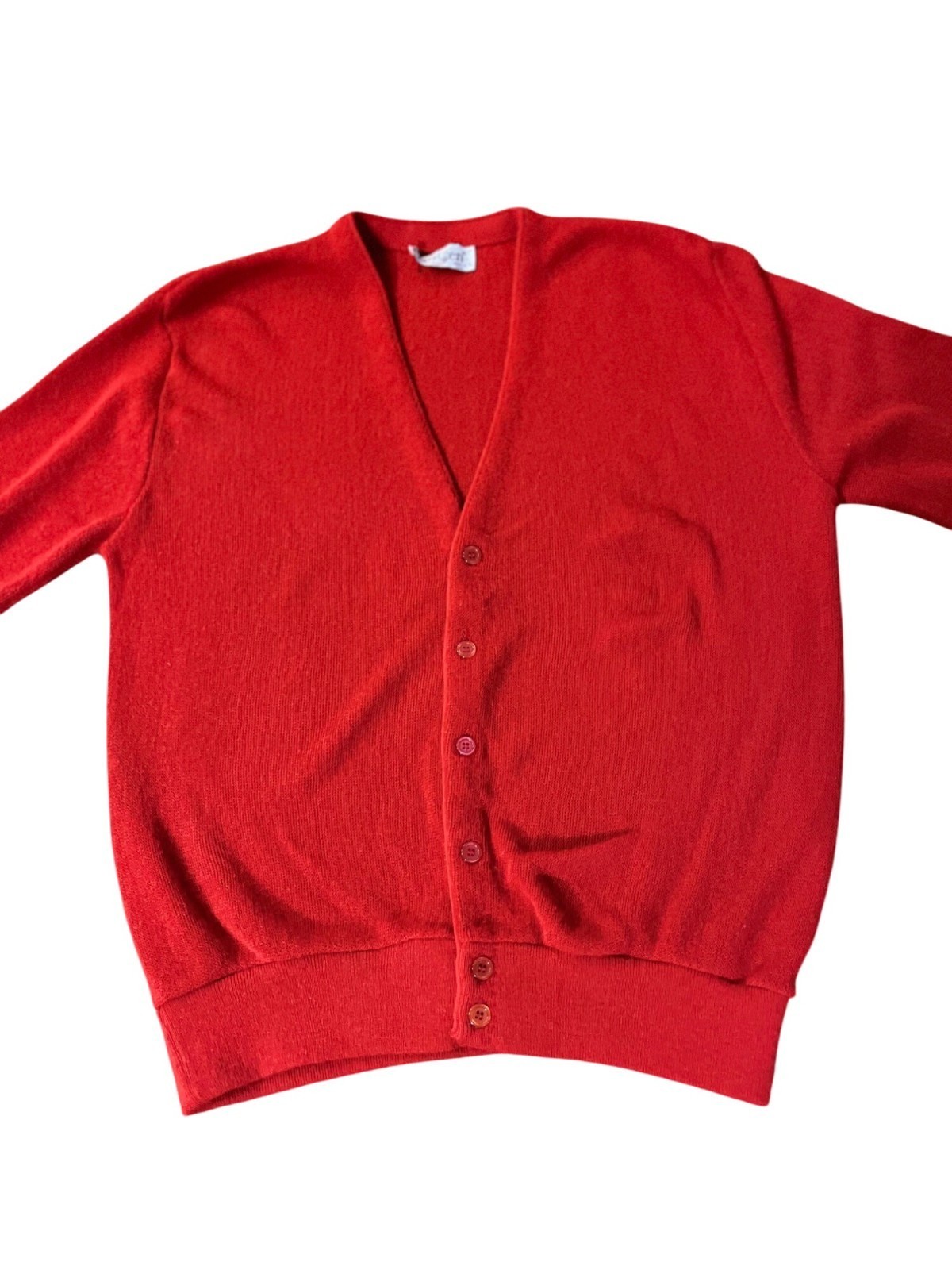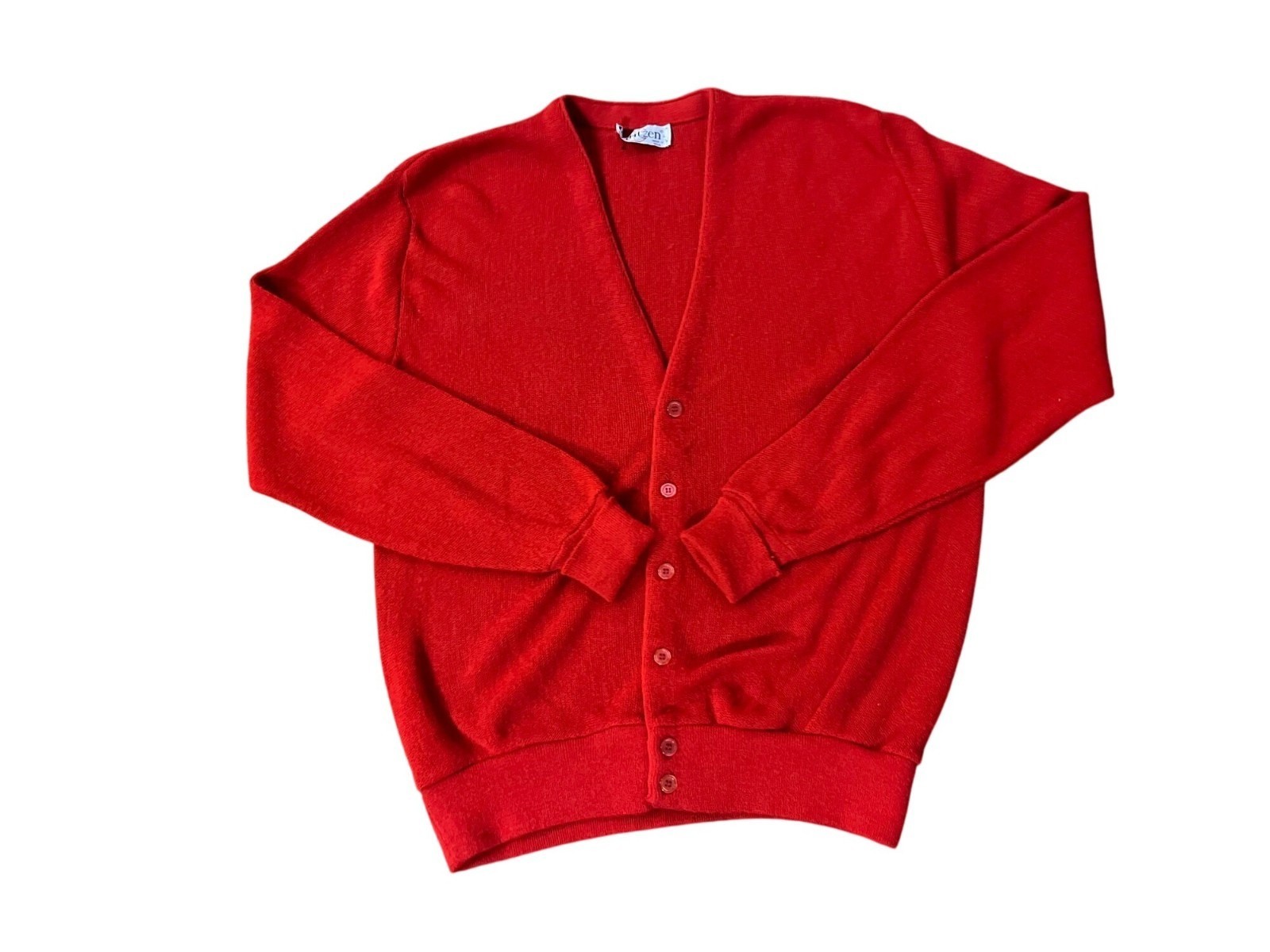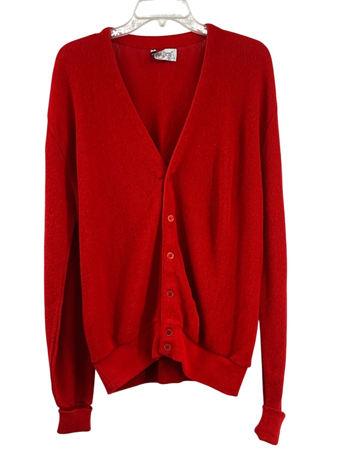 Vintage Jantzen Red Cardigan Mens L USA Made 70s 80s Classic Knit Sweater Used