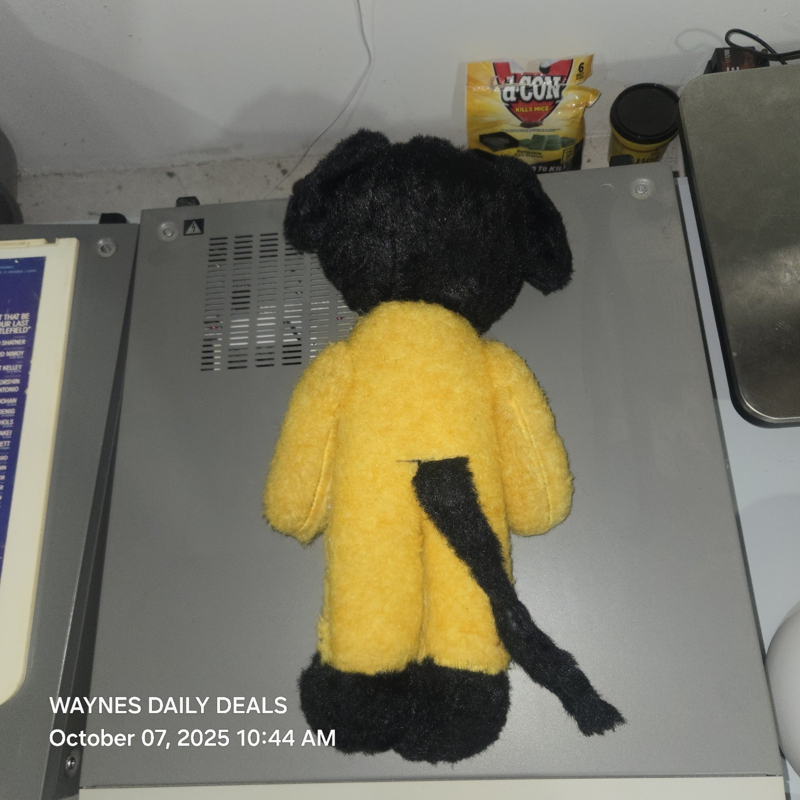 Colors: Yellow body, black ears/feet/tail