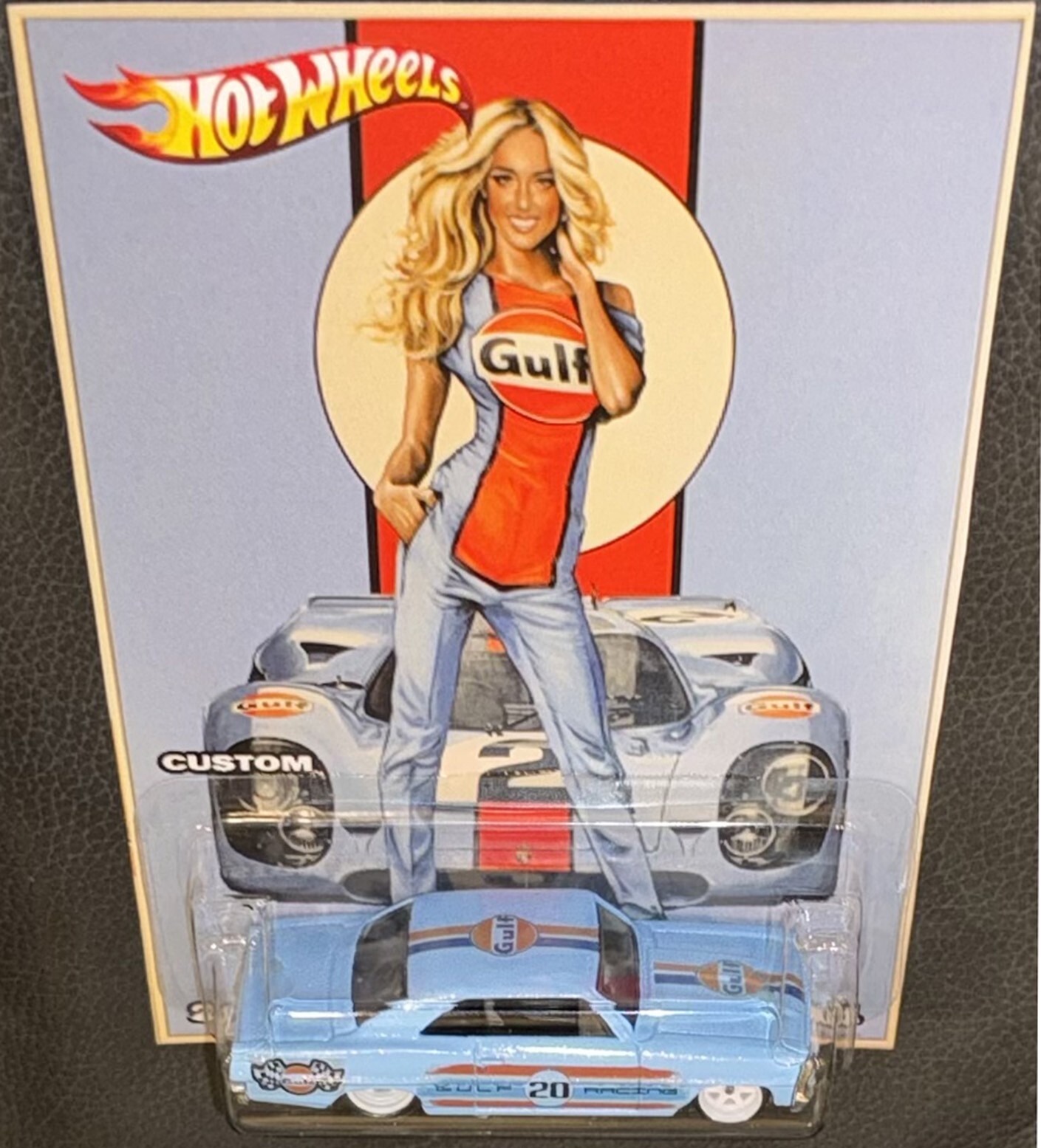 '66 Chevy Nova Custom Hot Wheels Gulf Racing Series Collectible Car with WW Real Riders Rubber Wheels.