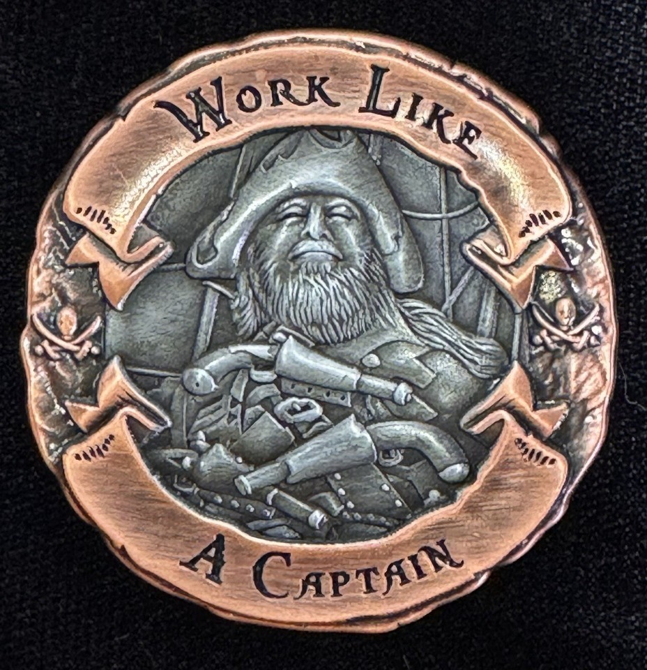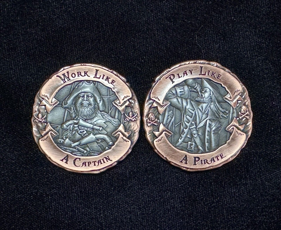 Work Like A Captain, Play Like A Pirate EDC challenge coin, 1.75” Treasure