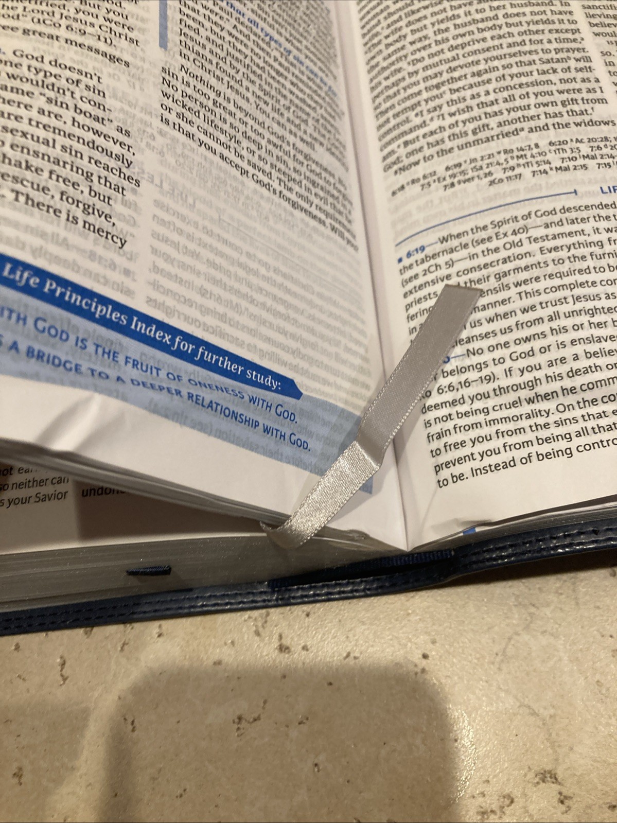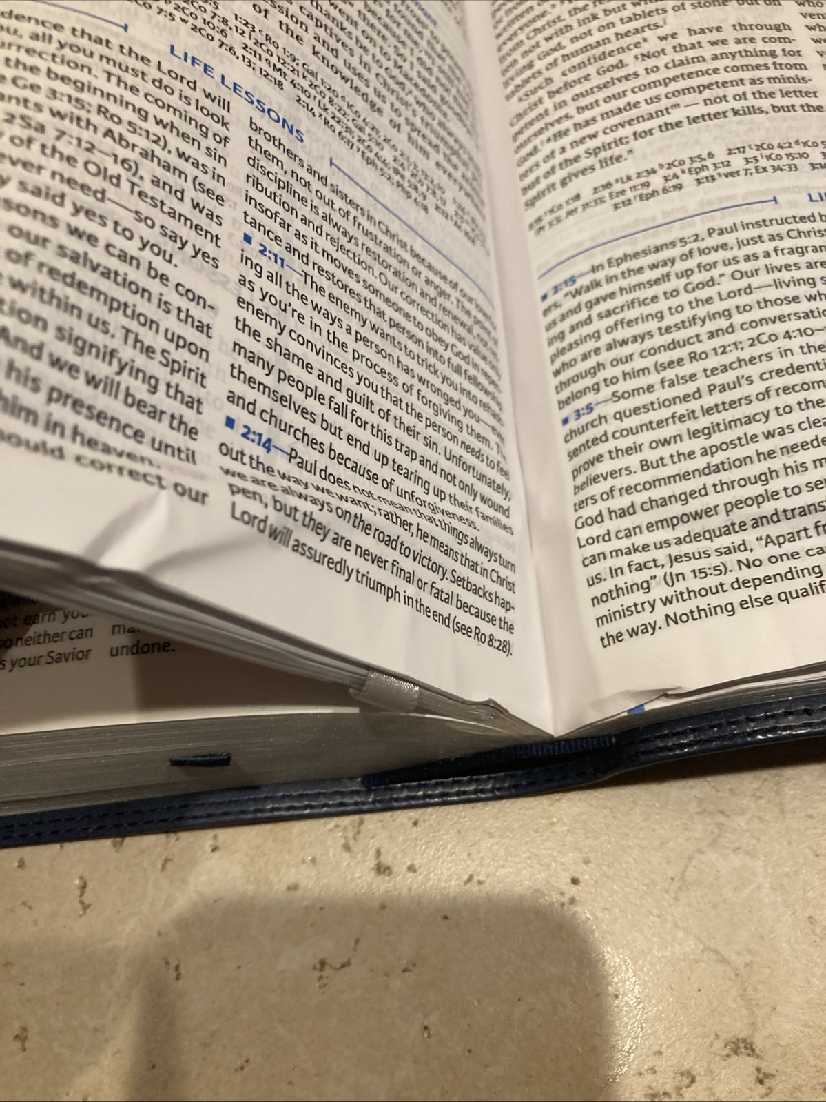 NIV LIFE PRINCIPLES BIBLE CHARLES STANLEY BLUE LEATHER SOFT 2ND EDITION DAMAGED
