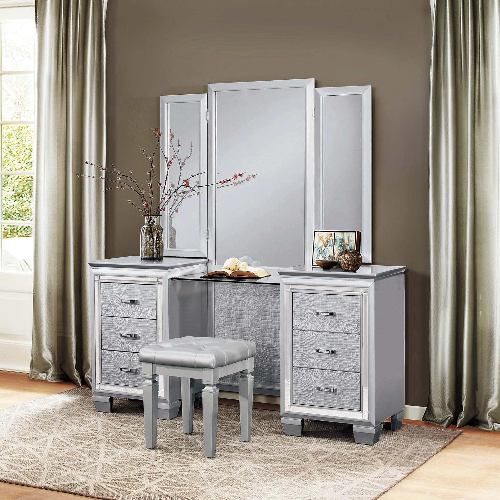 Modern Glam Silver Vanity Stool - Faux and 50 similar items