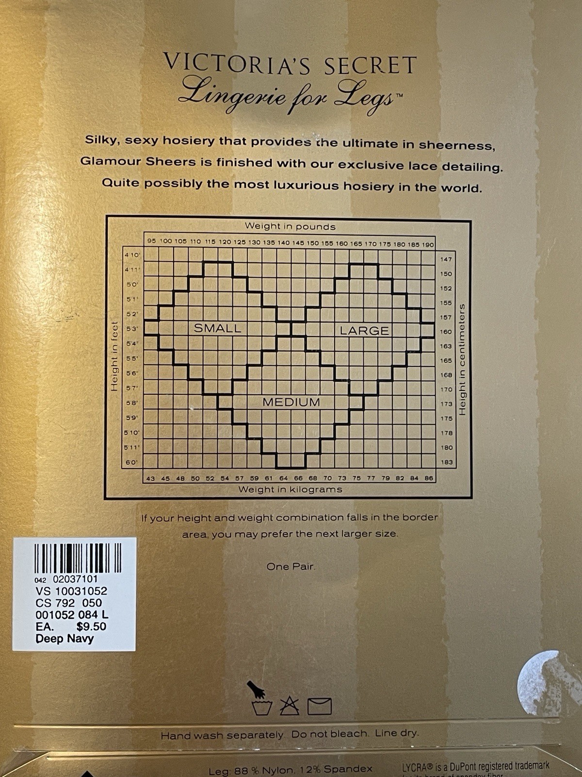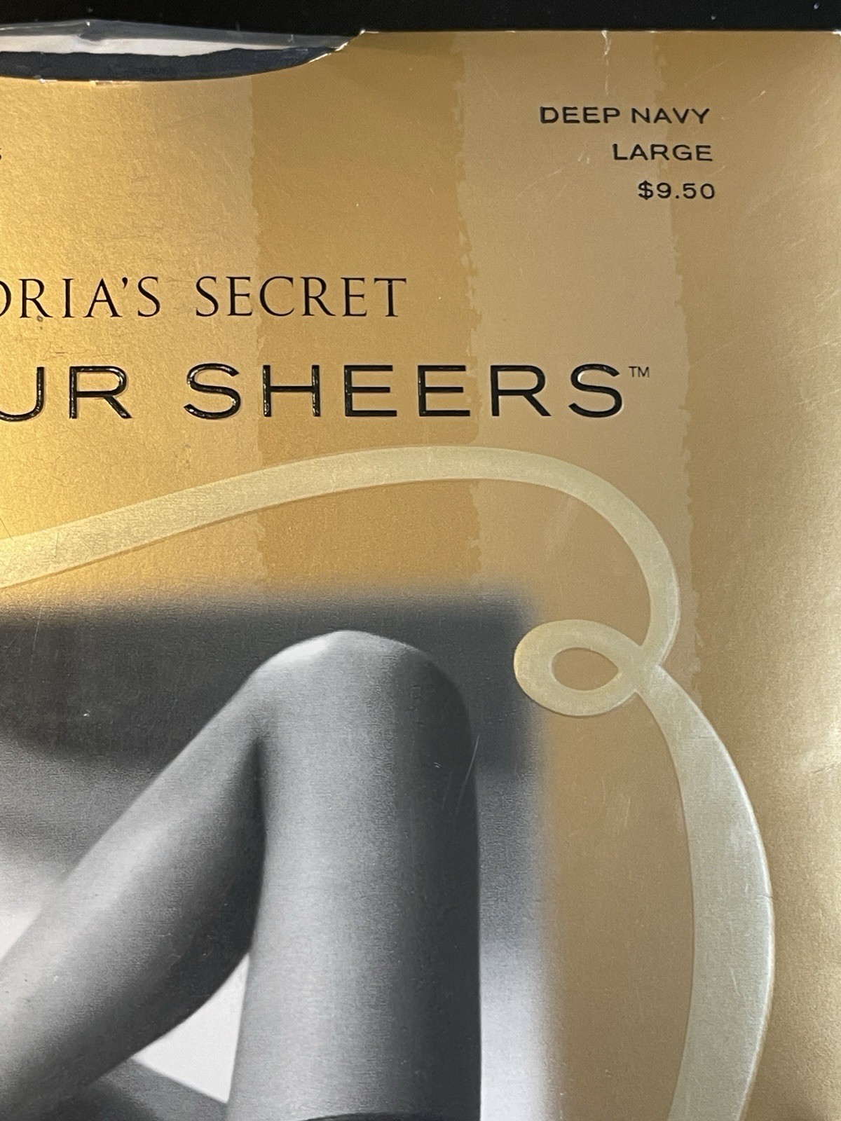 Victoria's Secret Glamour Sheers Lace Top Thigh High Hose Deep Navy Blue Large