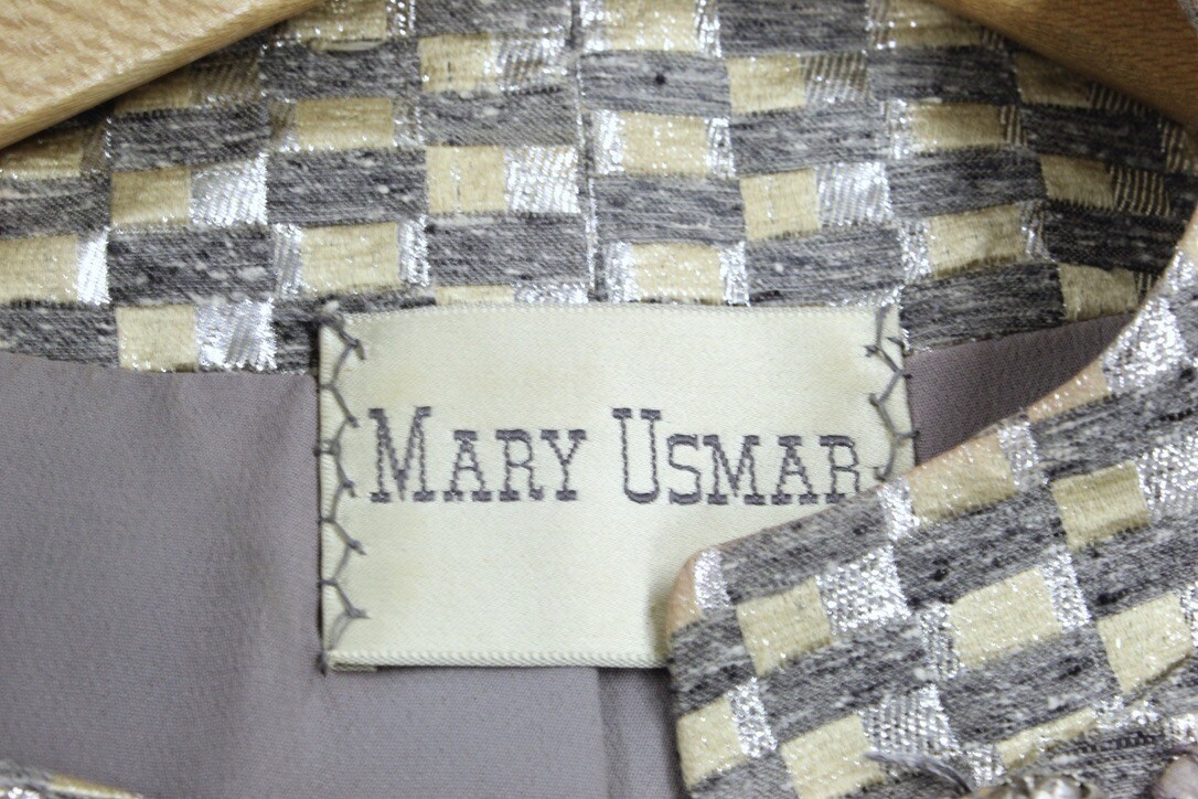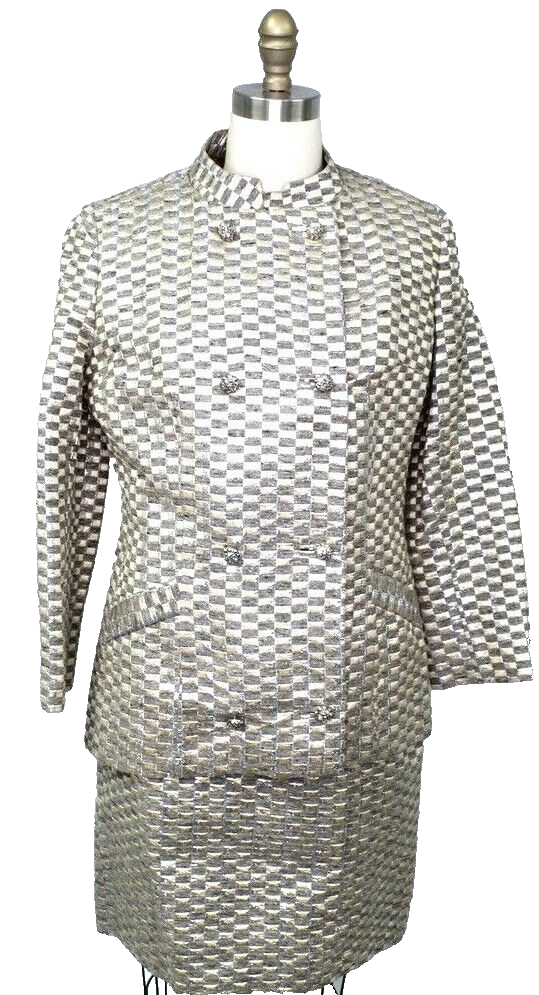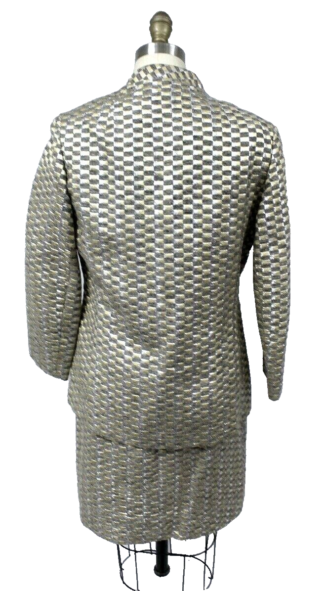 VTG 60s Zelinka Mary Usmar 3PC Skirt Suit Jackie O Gold Silver Metallic Sz 8 M