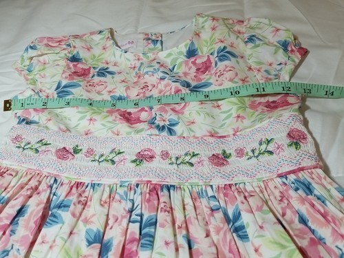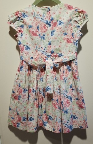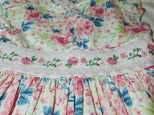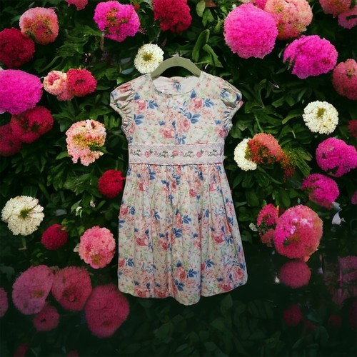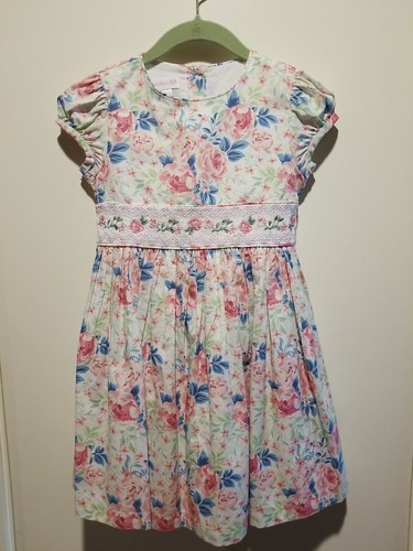 Bonnie Jean Girl's Dress Size 5 Pink Blue Embroidered Flowers Smocked Waistband