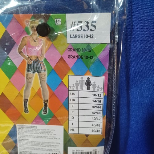 Get ready to soar through the skies with this stunning Harley Quinn Birds of Prey costume! Perfect for Halloween or any cosplay event, this costume is designed for women's size L (10-12) and features a vibrant multi-color design. Whether you're a fan of the Harley Quinn brand or simply want to add a touch of personality to your wardrobe, this costume is the perfect choice.