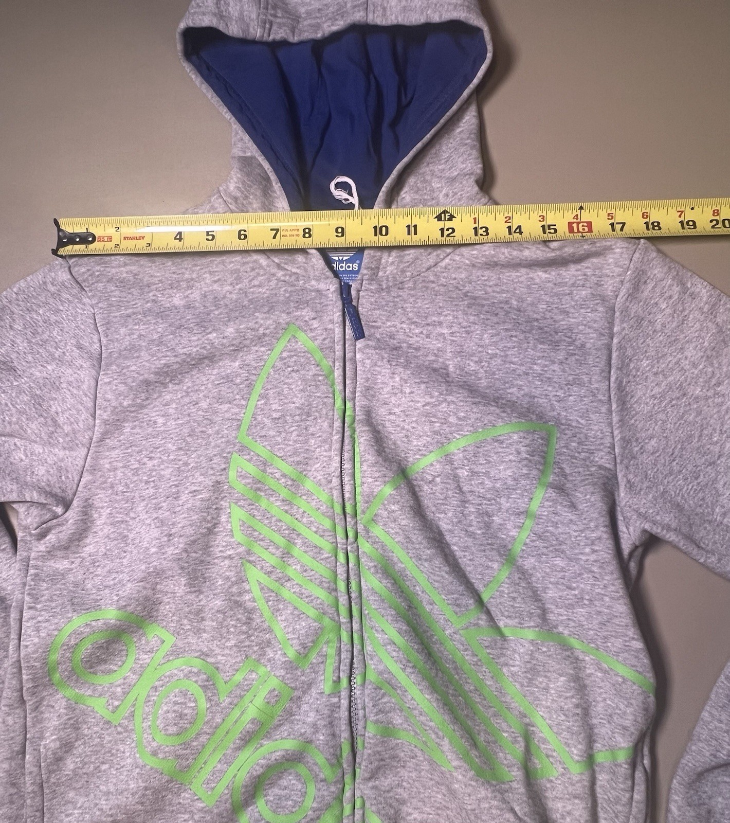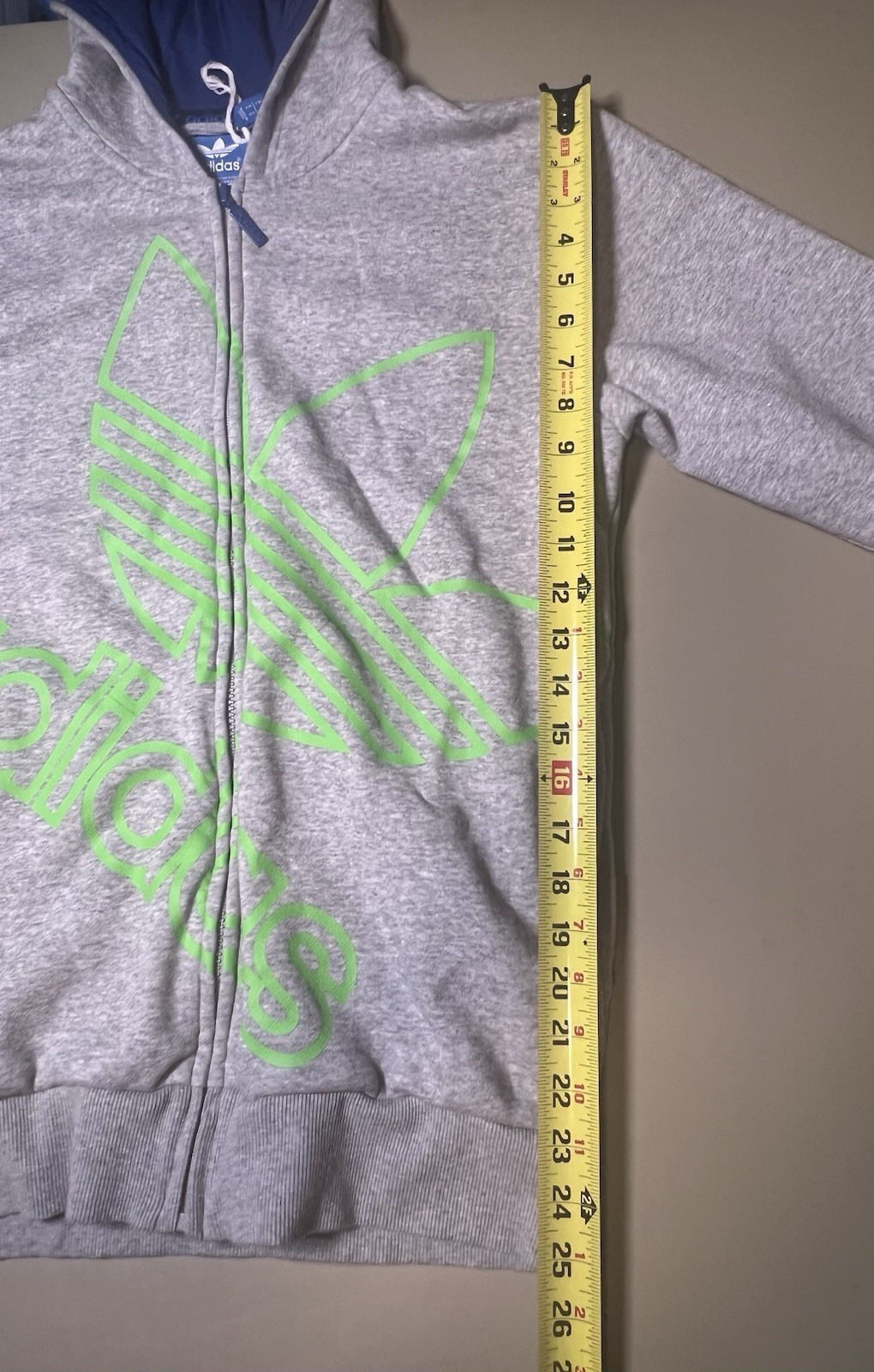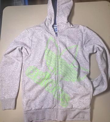 Adidas Full Zip Hoodie Men’s S Grey With Green Logo Blue Embroidery Logo - READ