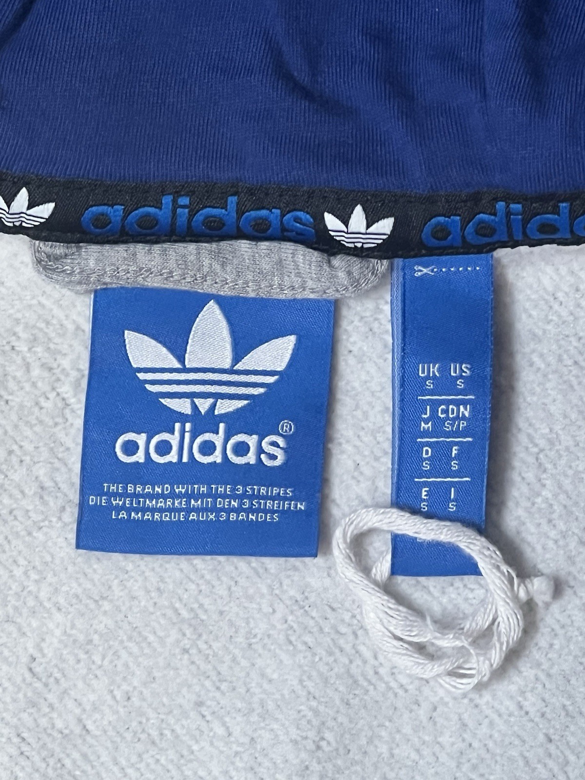 The product is a men's Adidas full zip hoodie in size small, featuring a grey color with a green logo on the front and blue embroidery on the back. This hoodie offers a comfortable and stylish activewear option for men, with the brand logo serving as a trendy accent. Perfect for casual wear or working out, this hoodie is a versatile and on-trend addition to any wardrobe.