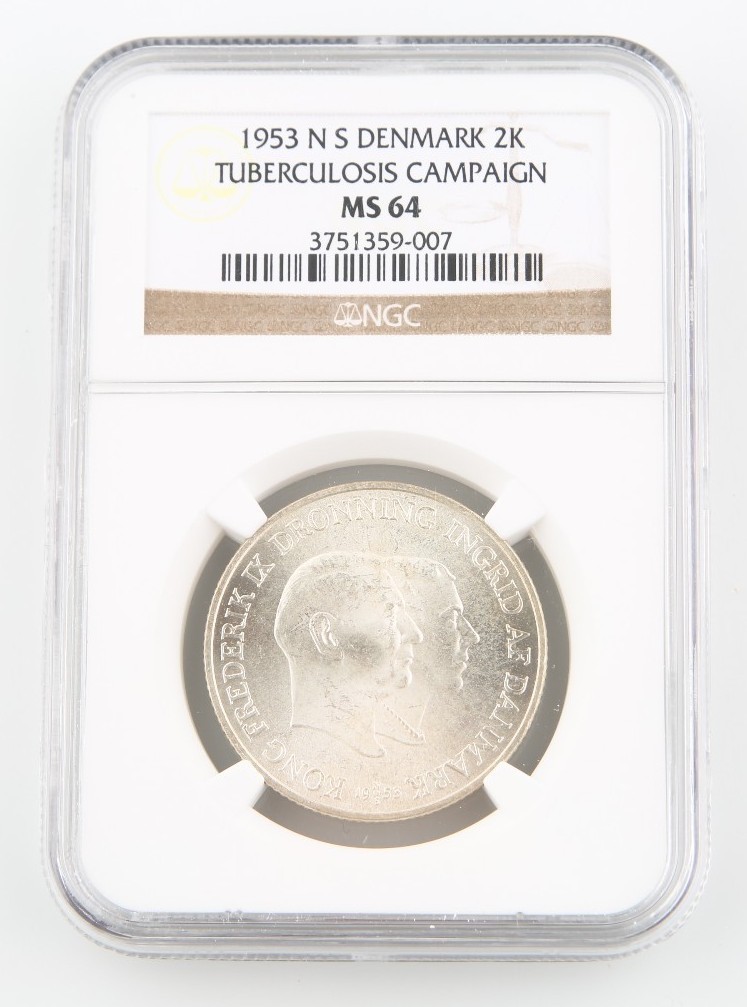 Slabfie par NGC avec le titre "1953 NS Danemark 2K // Campagne de tuberculose"