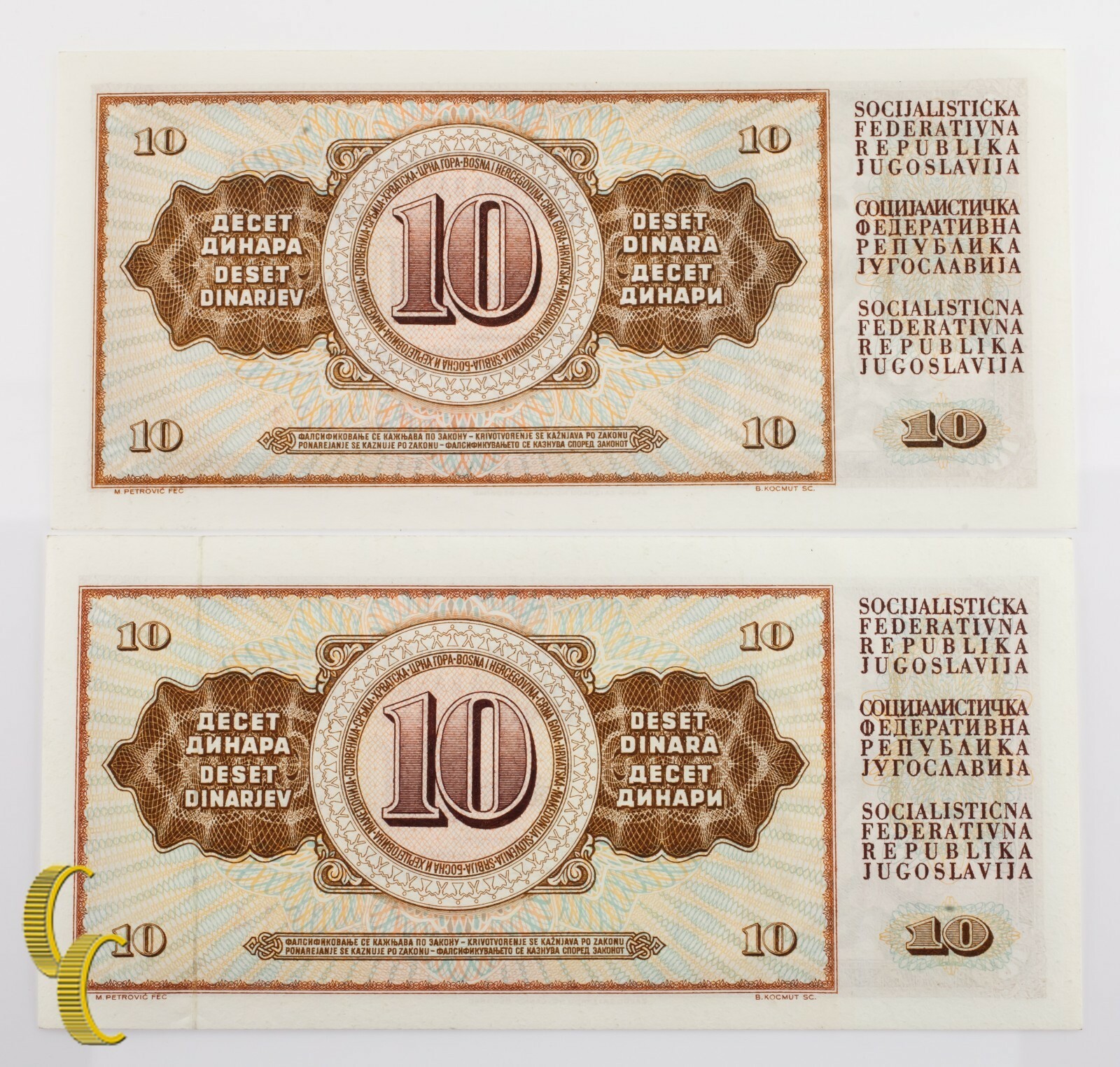 (2) 1968 Yougoslavie 10 NOTES DINAR