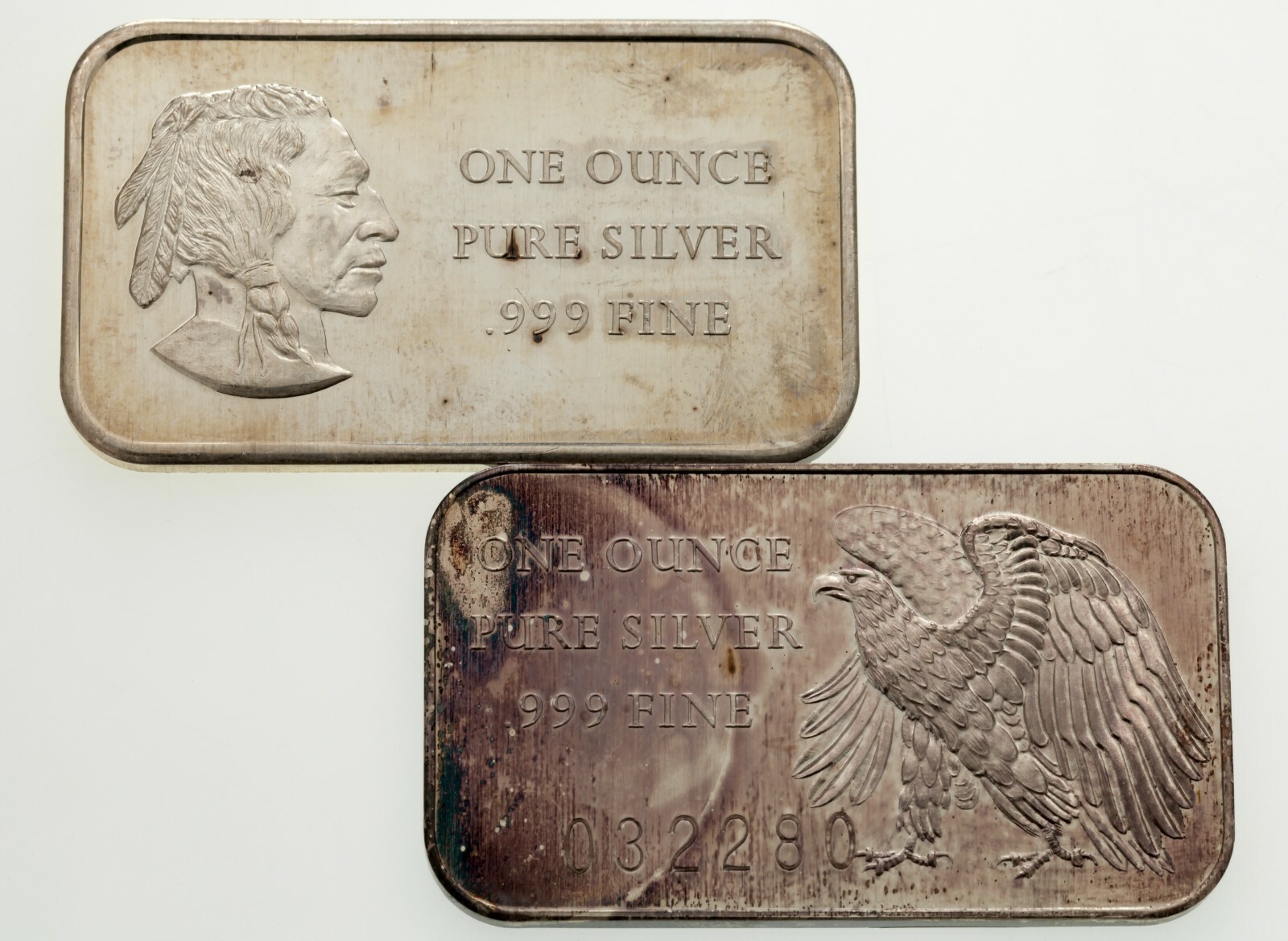 Art Bar in argento da 1 oz Madison Mint del 1972, lotto di 2 (Majestic Eagle, indiano)