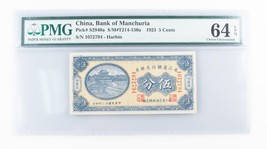 1923 China 5 Centavos (Elección UNC-64 Sn PMG ) Banco De Manchuria Harbin 5c