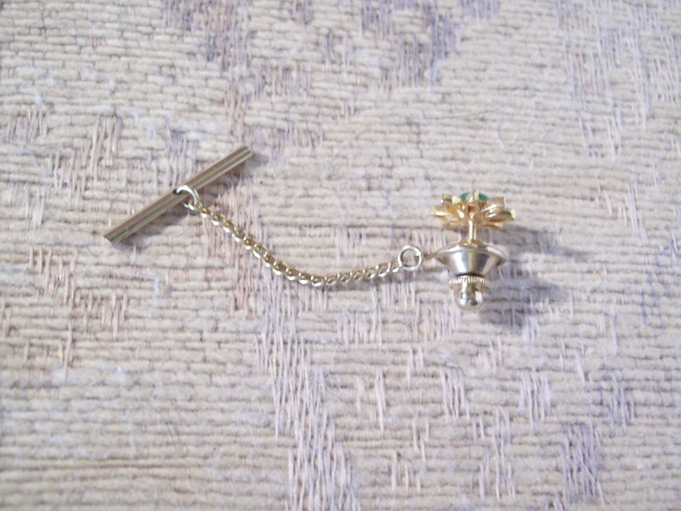 Vintage Gold Tone Jade Style STAR BURST FLOWER TIE TAC - Very Nice !