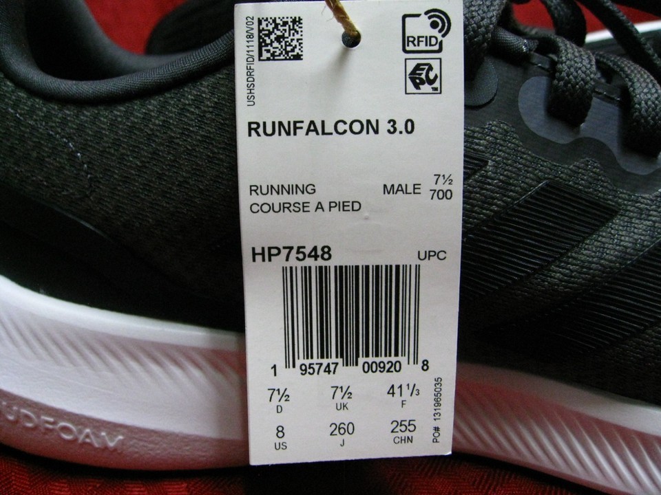 New With Box Adidas RunFalcon 3.0 HP6648 Mens Black White Running Shoes Size 8