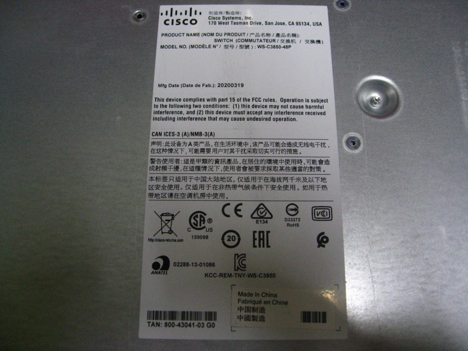 | Model: | Cisco Catalyst WS-C3850-48P-L |