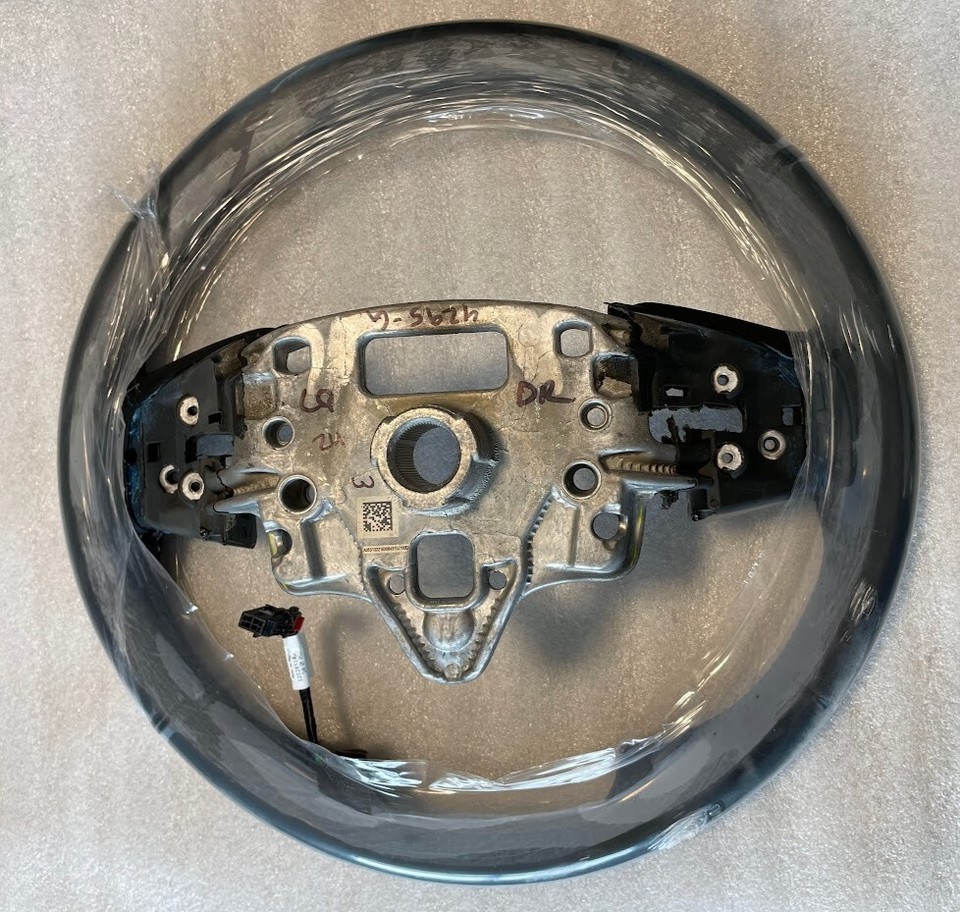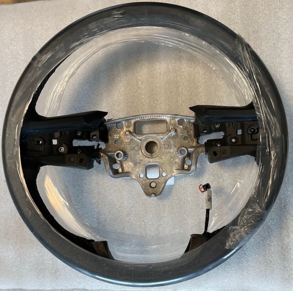 This is a bare steering wheel. It is the jet black color with ash gray stitching. It did have the heated steering wheel and pre-crash collision alert buttons, so it will support those features with your harness and switch/control modules. It also had the audio/cluster control switch on the right side, as well as the volume and favorite switches on the back side of the wheel. However, if you did not have any/some of those switches before, merely adding this wheel, wiring and those switches may not get you those features. In some cases additional wiring may be required and possibly even a different gauge cluster. Please don't say we didn't warn you...