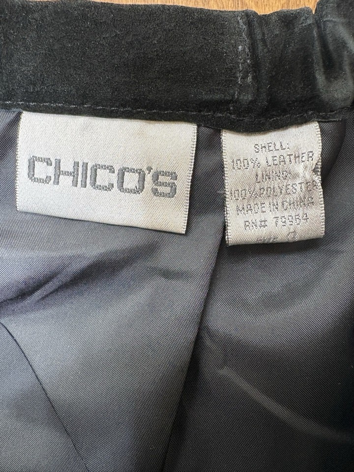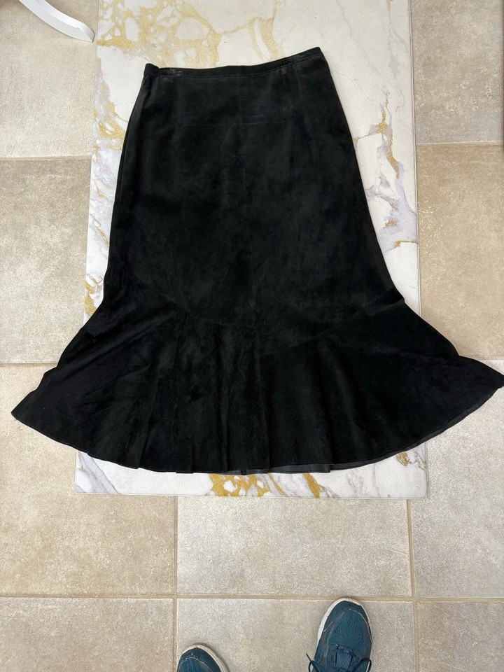 Chicos Suede Leather Skirt with flare near hem. Great for twirling on the dance floor.