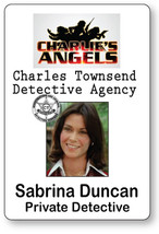 SABRINA DUNCAN CHARLIE'S ANGELS NAME BADGE TAG HALLOWEEN COSPLAY PIN BACK