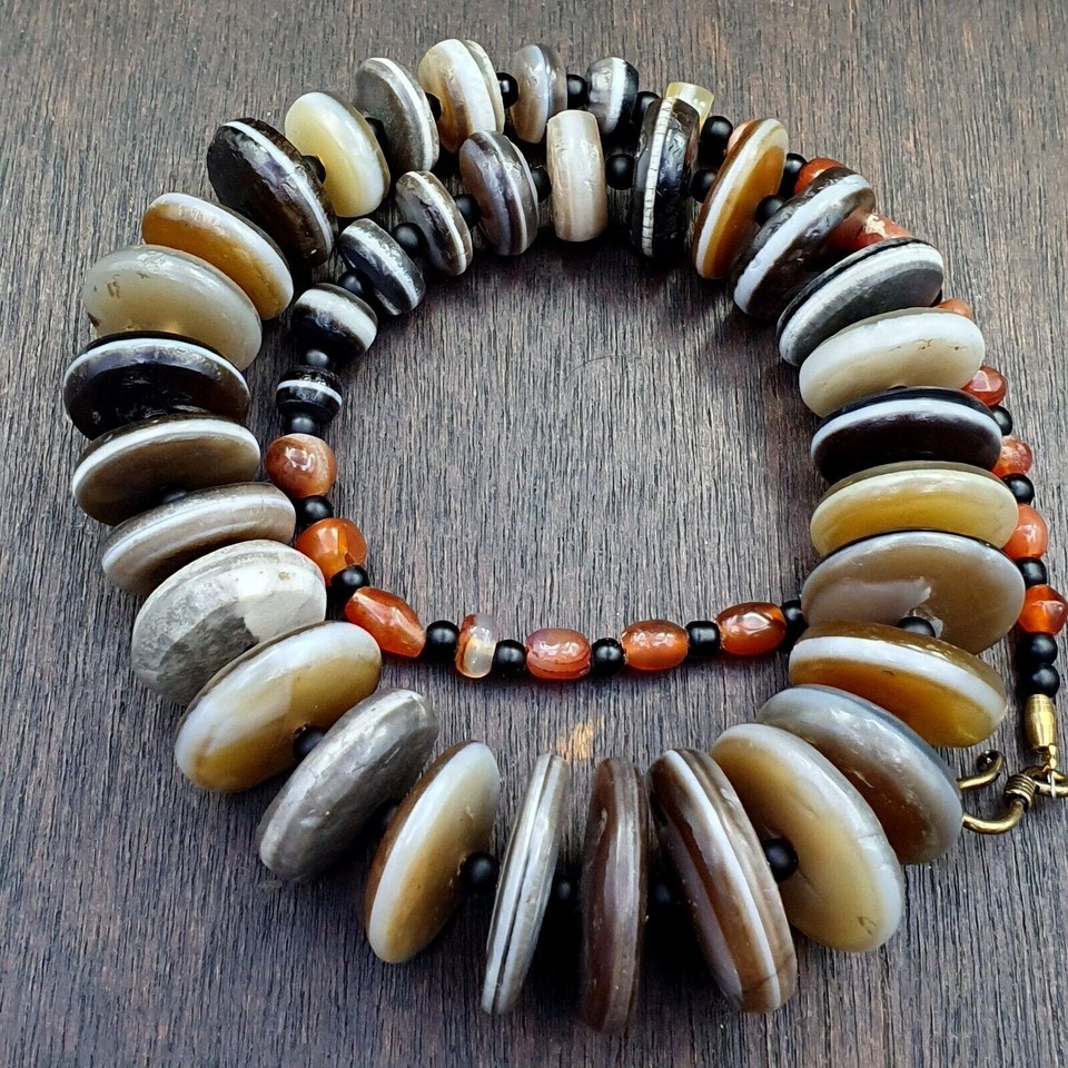 Sehr seltene Sammlung antike Dzi Achat Steinscheibe Himalaya Perlen...