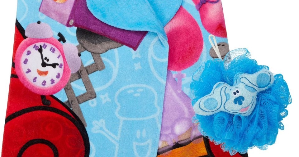 Dive into a world of adventure with the Blue's Clues hooded towel and character loofah set! After a long day of playing, kids can wrap themselves in this super-soft, cozy towel featuring all their favorite friends like Blue, Magenta, Mailbox, and Slippery Soap. But the fun doesn't stop there! The included loofah, shaped just like Blue, makes bath time a playful mystery to solve. With this set, every bath becomes a new clue to find, leading to a warm and happy ending! The hooded towel measures 24" X 50" and is crafted of a soft, absorbent cotton fabric.