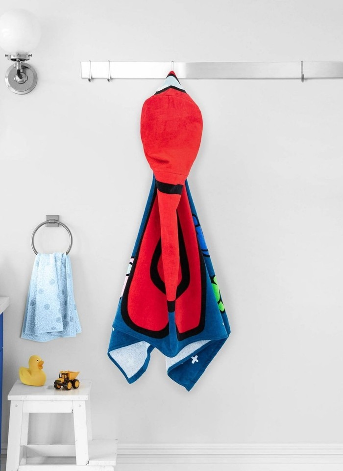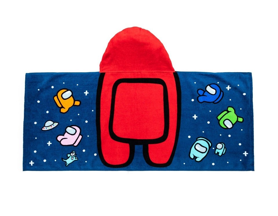 Get ready for an out-of-this-world bath time with this Among Us hooded towel! Featuring a fun and colorful design, this towel lets you transform into a crewmate after a shower or swim. The soft, absorbent cotton material is perfect for drying off quickly, making you feel cozy and ready for your next mission-or just for lounging around. Crafted of a soft and absorbent cotton fabric and measures 22" X 51".