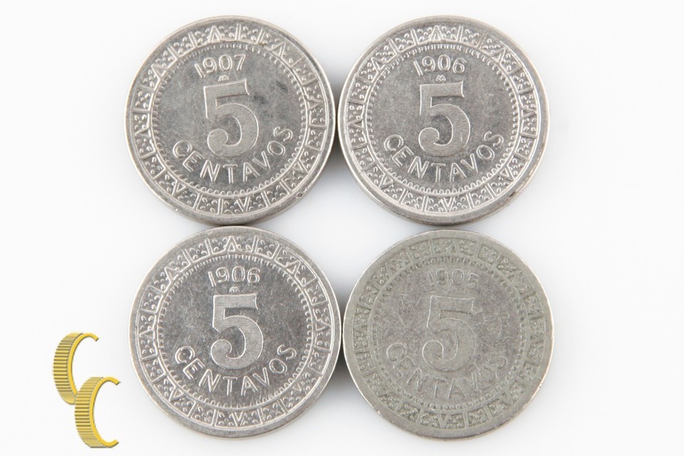 1905-1907 Mexico 5 Centavos Lot (5c, 4 pieces)