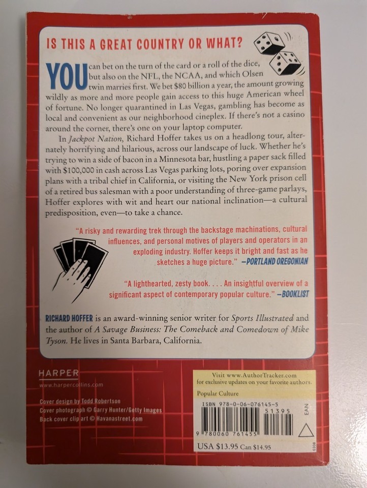Jackpot Nation Richard Hoffer Paperback Nonfiction Book About Gambling & Lottery