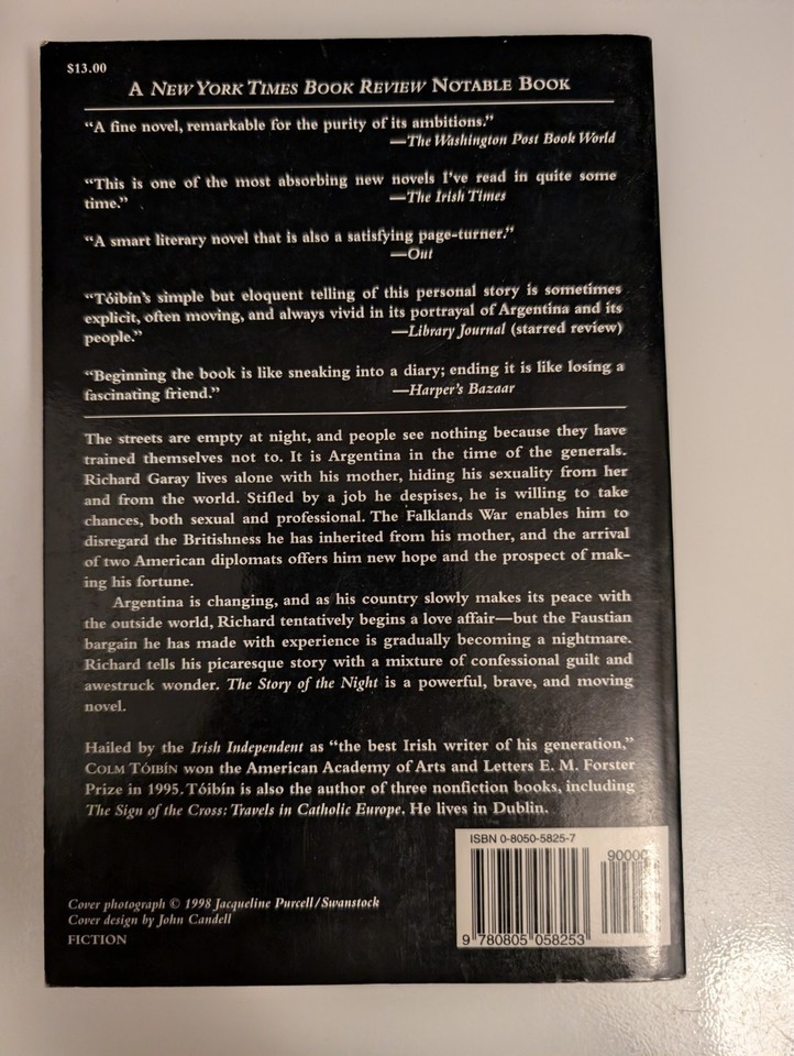 The Story of the Night by Colm Toibin Paperback Book Fiction Novel