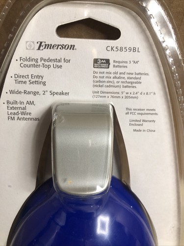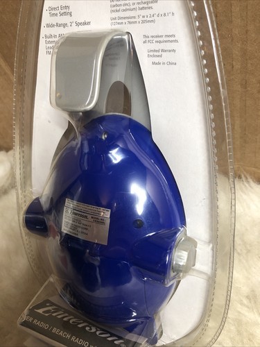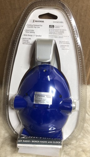 Sealed Vintage Emerson Hanging AM/FM Shower Radio With Clock Blue CK5859BL