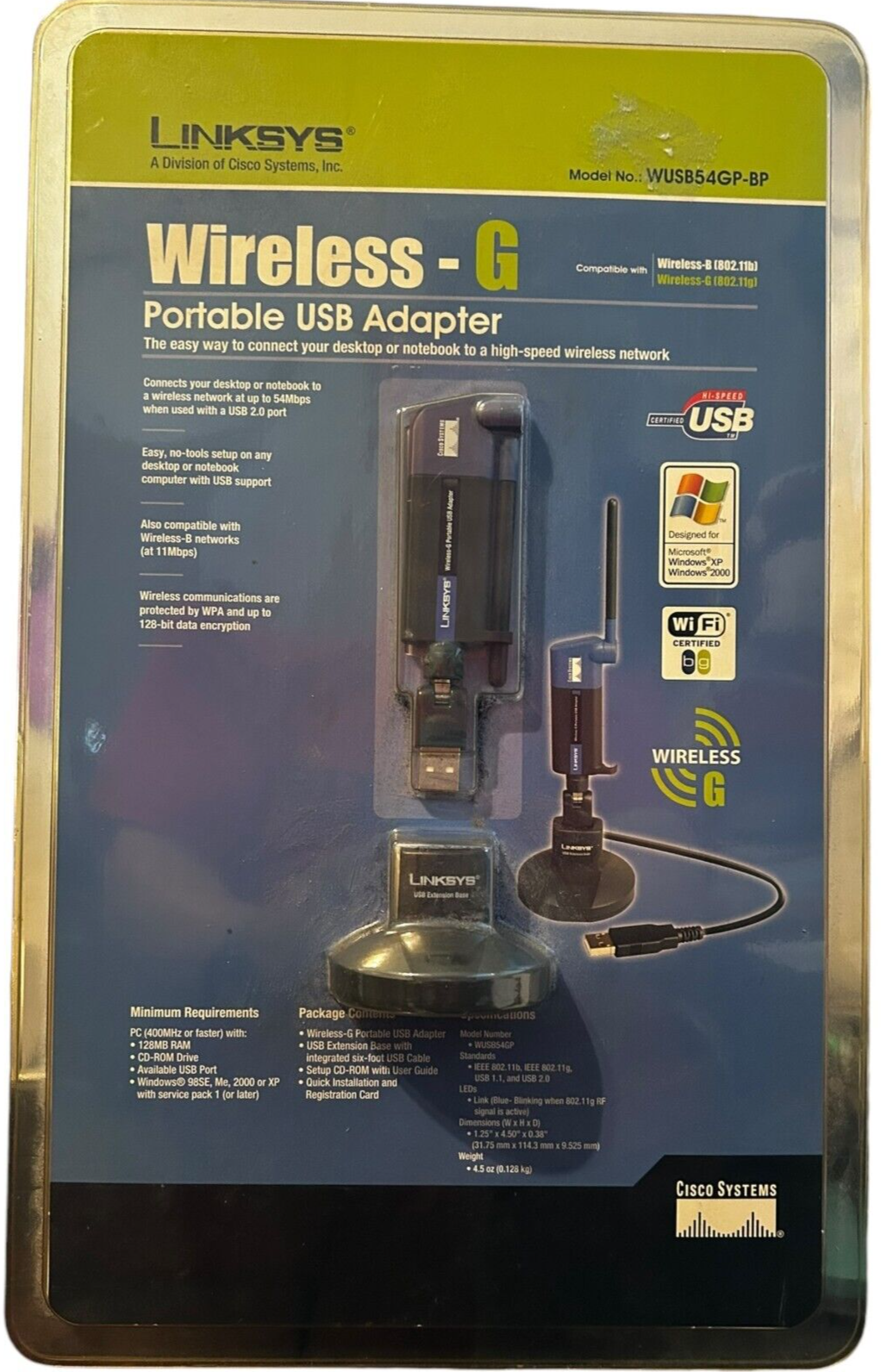 Cisco-linksys Wireless-g Portable USB Adapter (Wusb54gp-bp) NEW Sealed