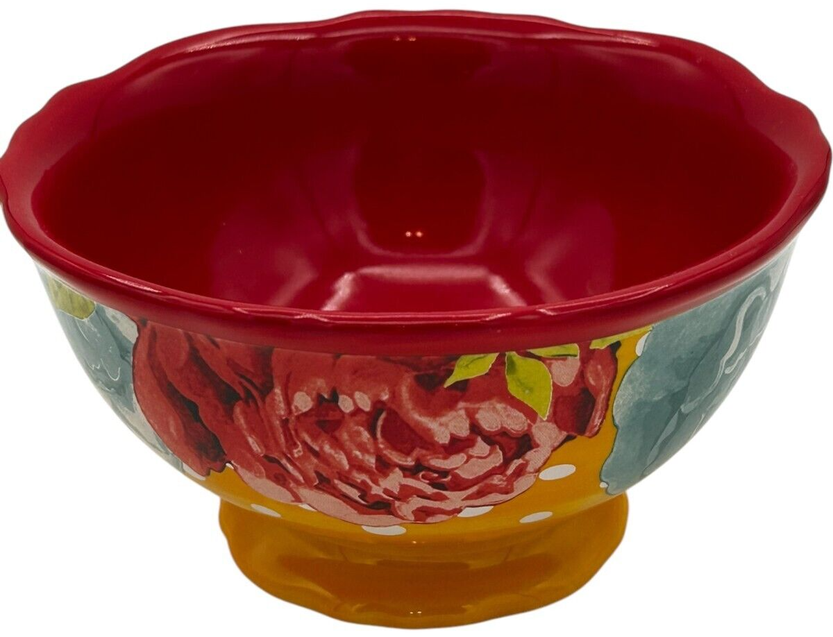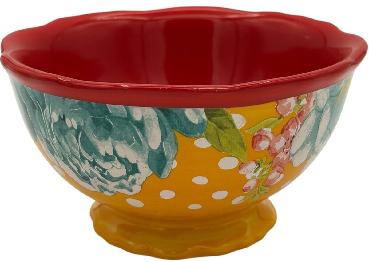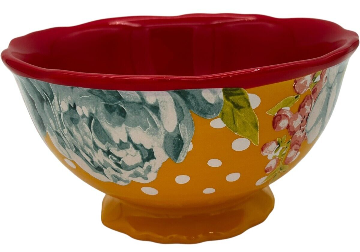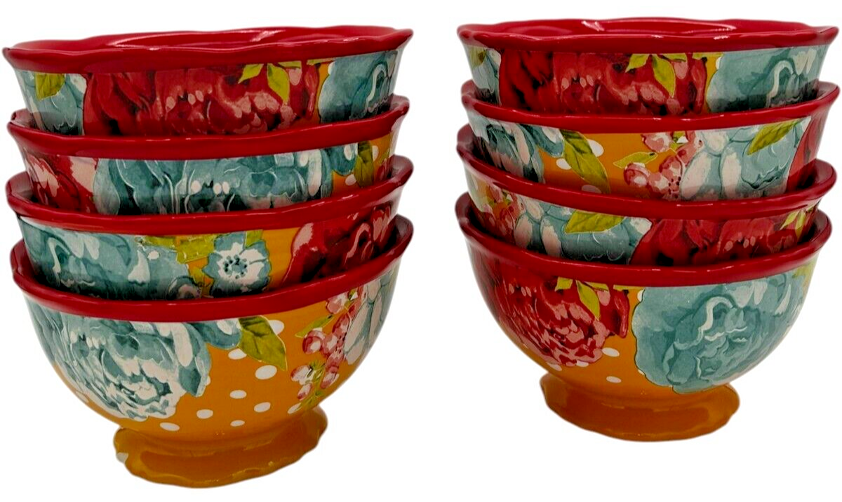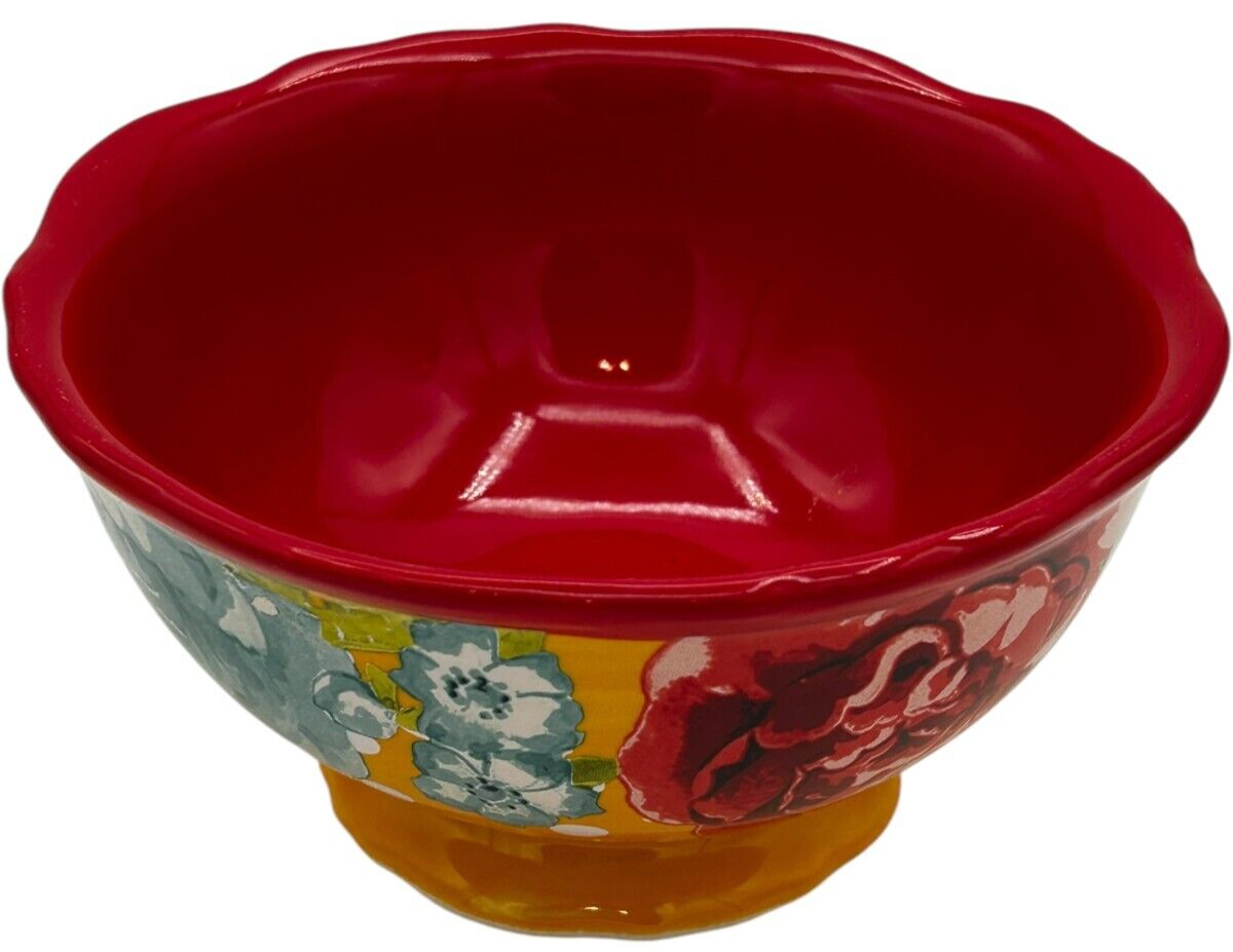 8 pcs Pioneer Woman Stoneware Red/Yellow Blossom Jubilee 6.2" Footed Cereal Bowl