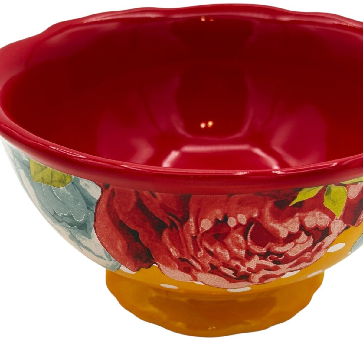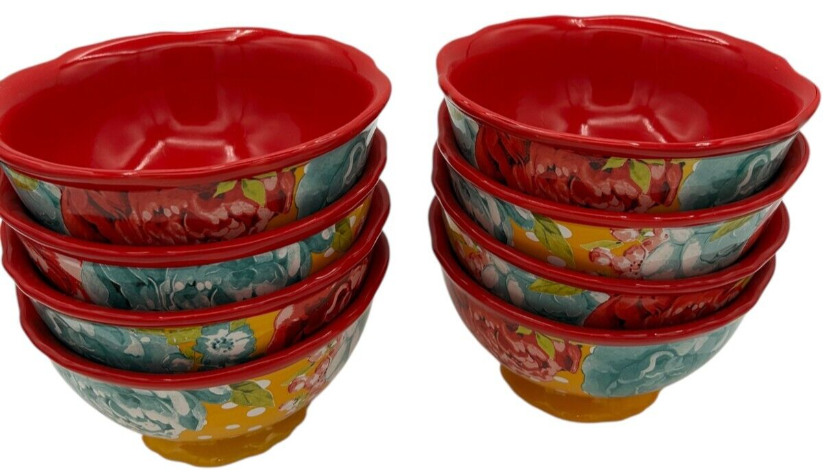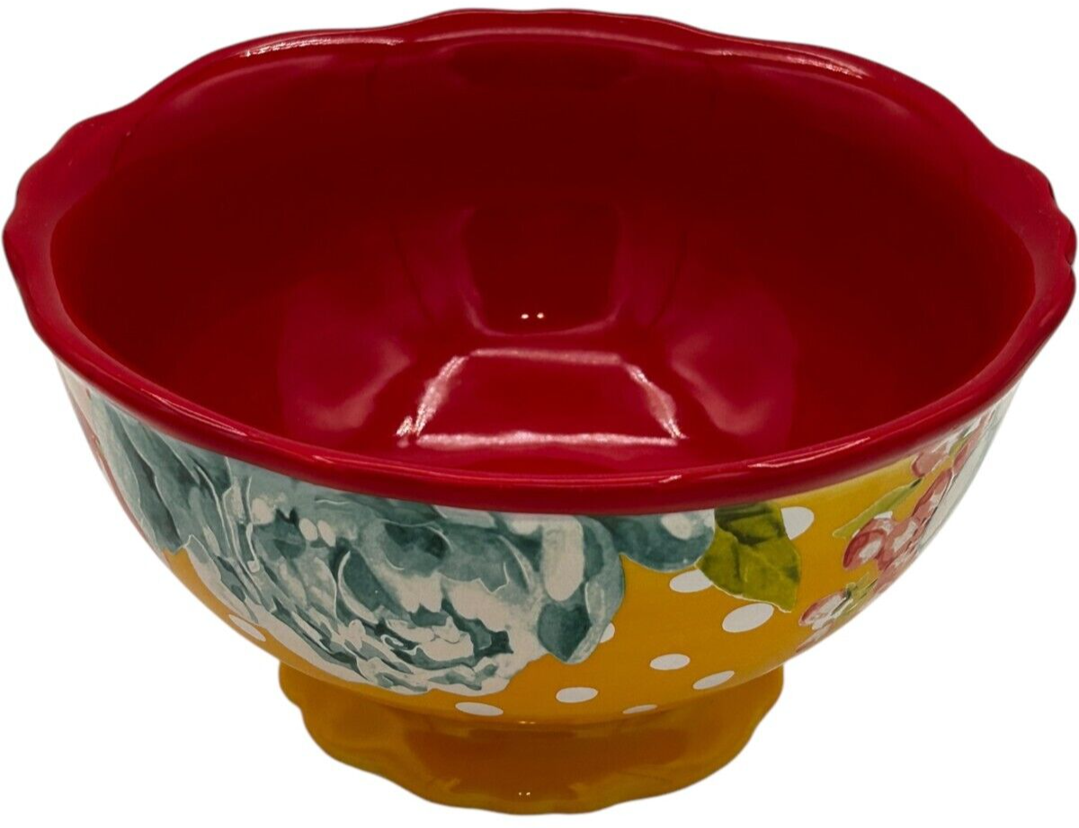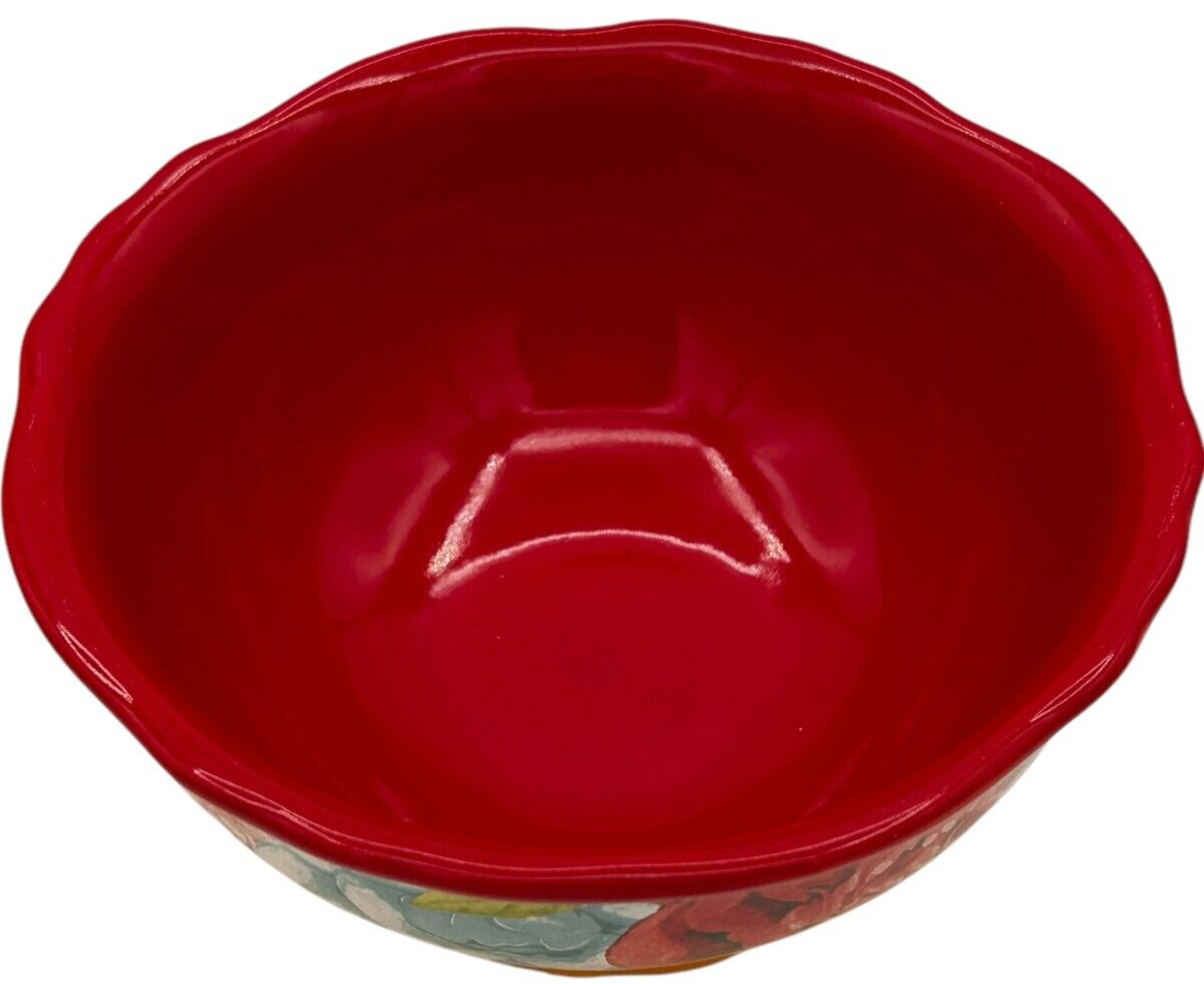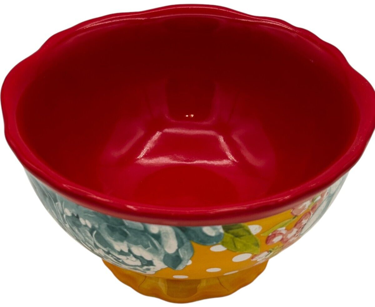 8 pcs Pioneer Woman Stoneware Red/Yellow Blossom Jubilee 6.2" Footed Cereal Bowl