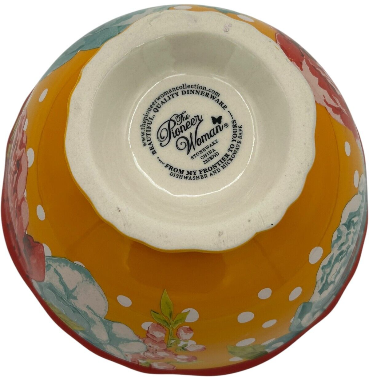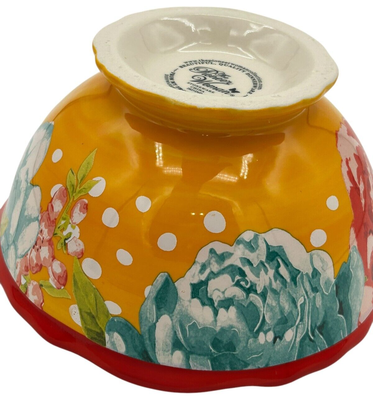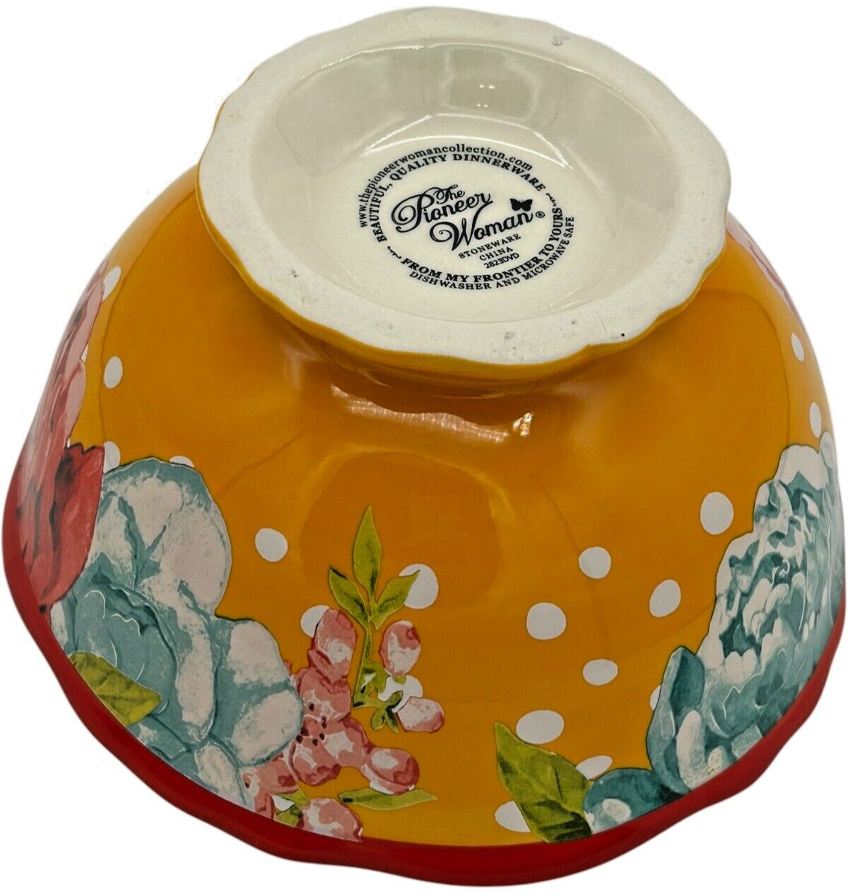 8 pcs - Pioneer Woman Stoneware Red/Yellow Blossom Jubilee 2823DVD 6.2" Footed Cereal Bowls