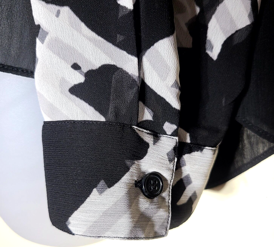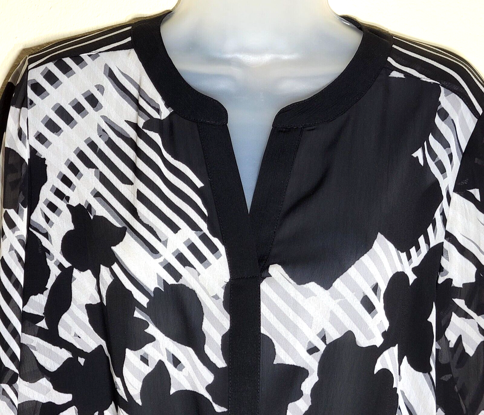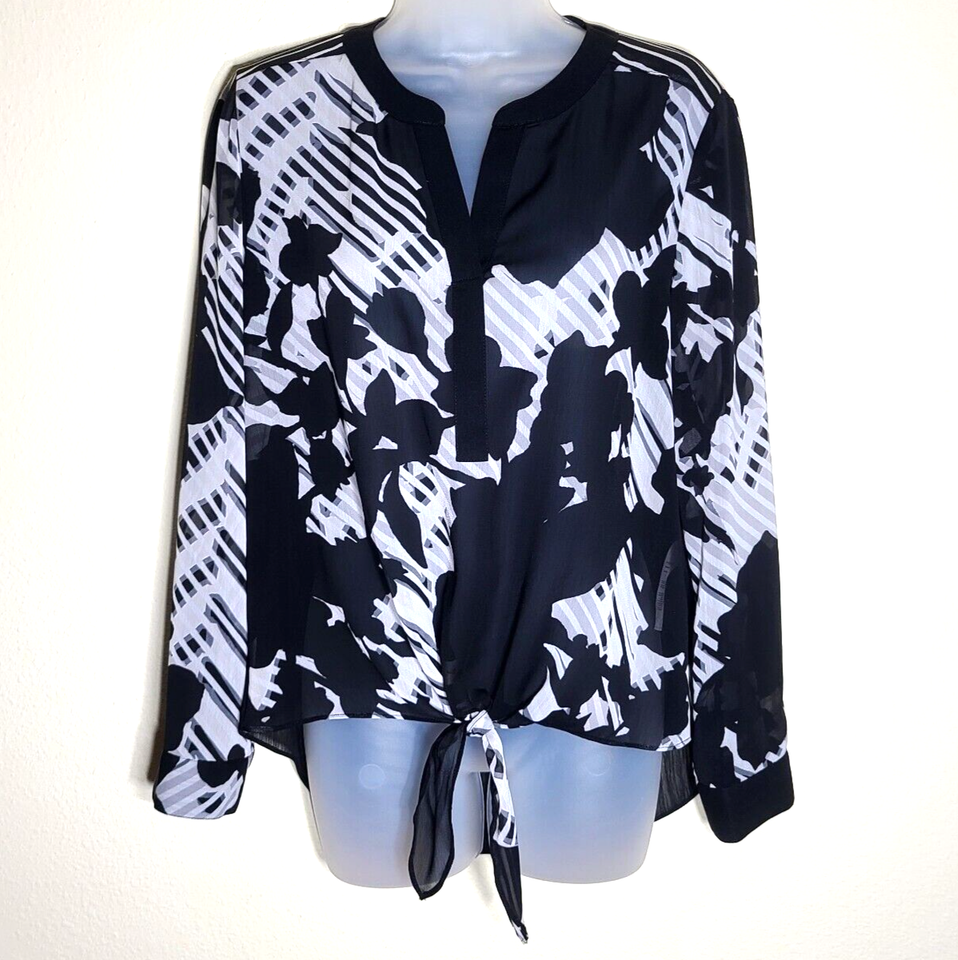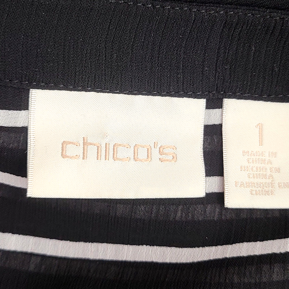 Chicos Top Size 1 Medium Multicolor Floral Blouse Sheer Tie Front Stripe Neutral