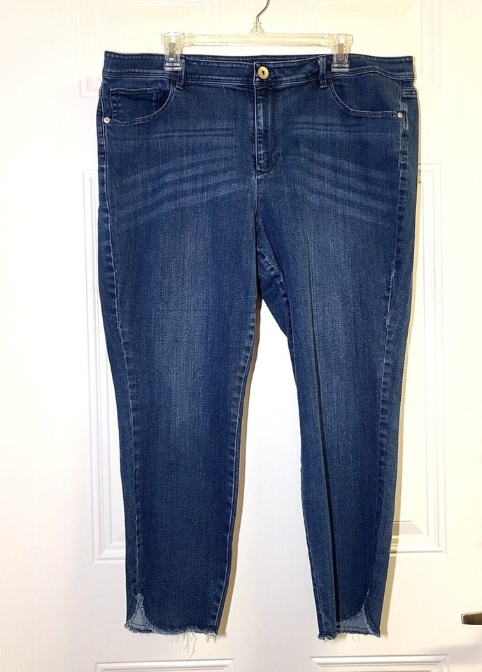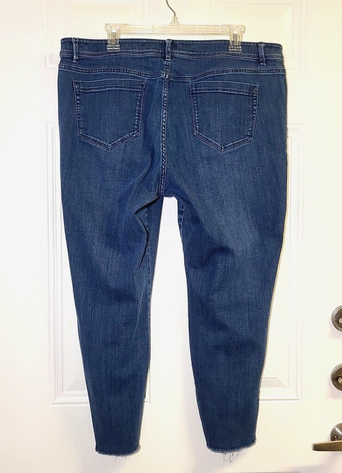 J Jill Jeans Authentic Fit Size 18 Med Wash Denim Slim Ankle Frayed Curved Hem