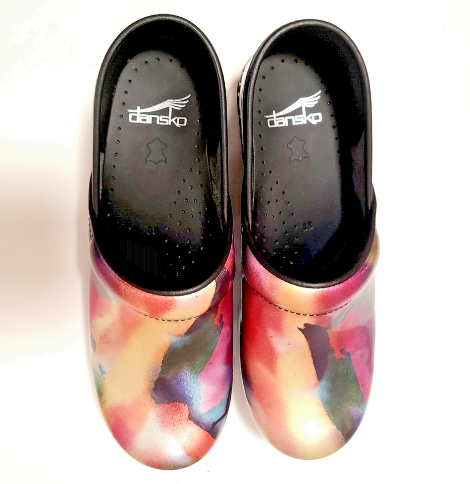 Dansko Professional Clog Patent Leather Size 38 US 7.5 8 Spray Paint Multicolor