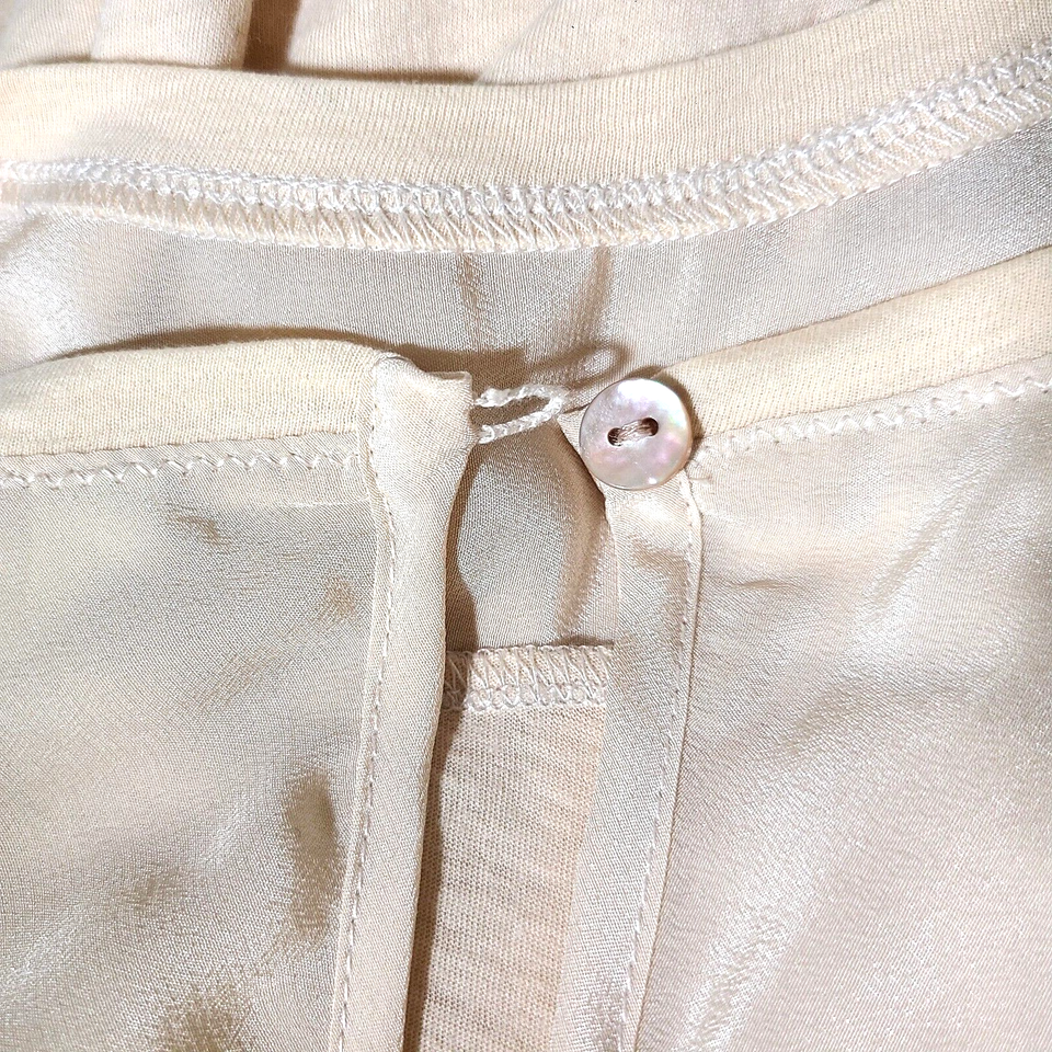 Material: 100% Silk (Yolk Sleeves), 100% Cotton Bodice Cuffs